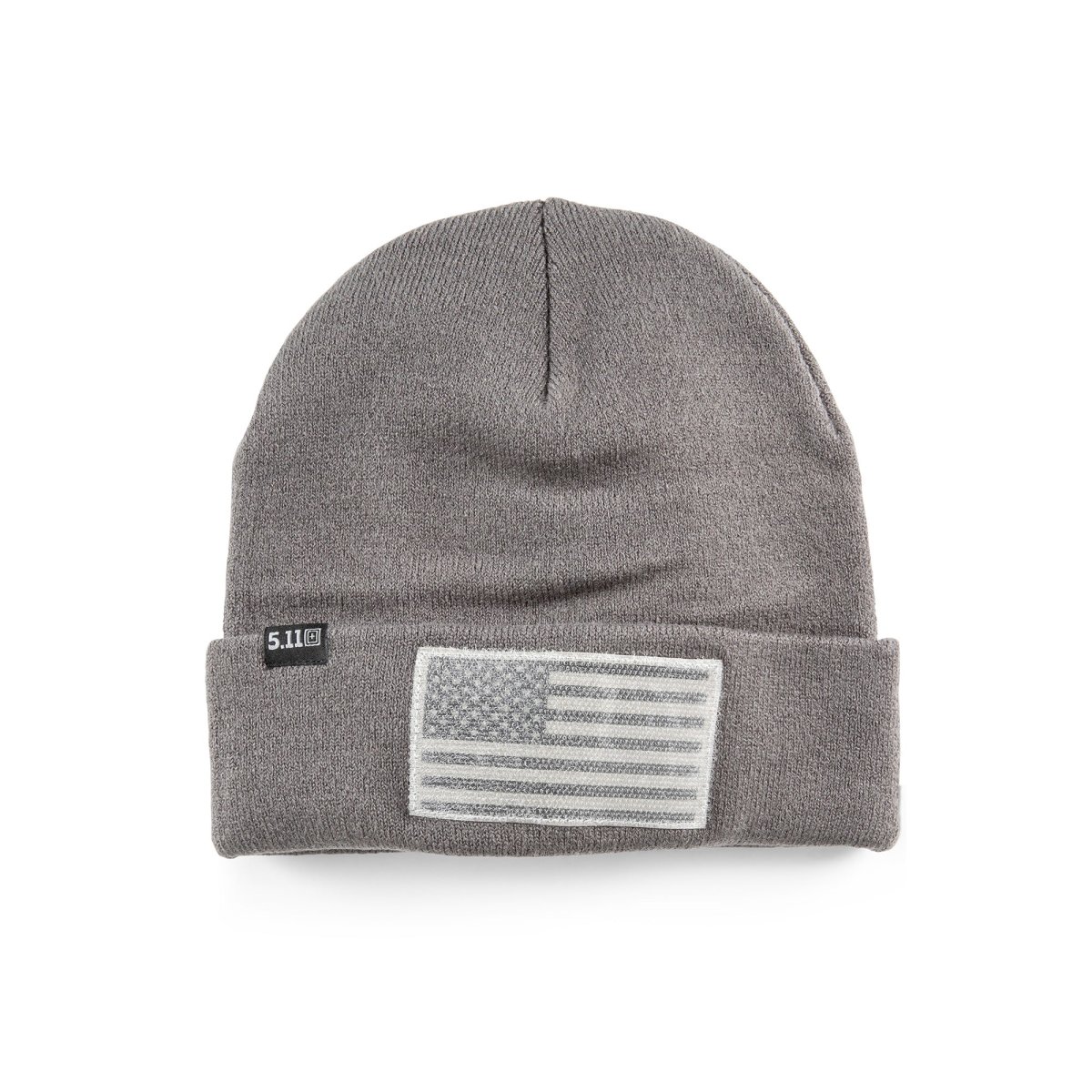 5.11 Cuffed Flag Bearer Beanie, berretto invernale lavorato a maglia con risvolto, patch con bandiera americana tono su tono cucita sul davanti