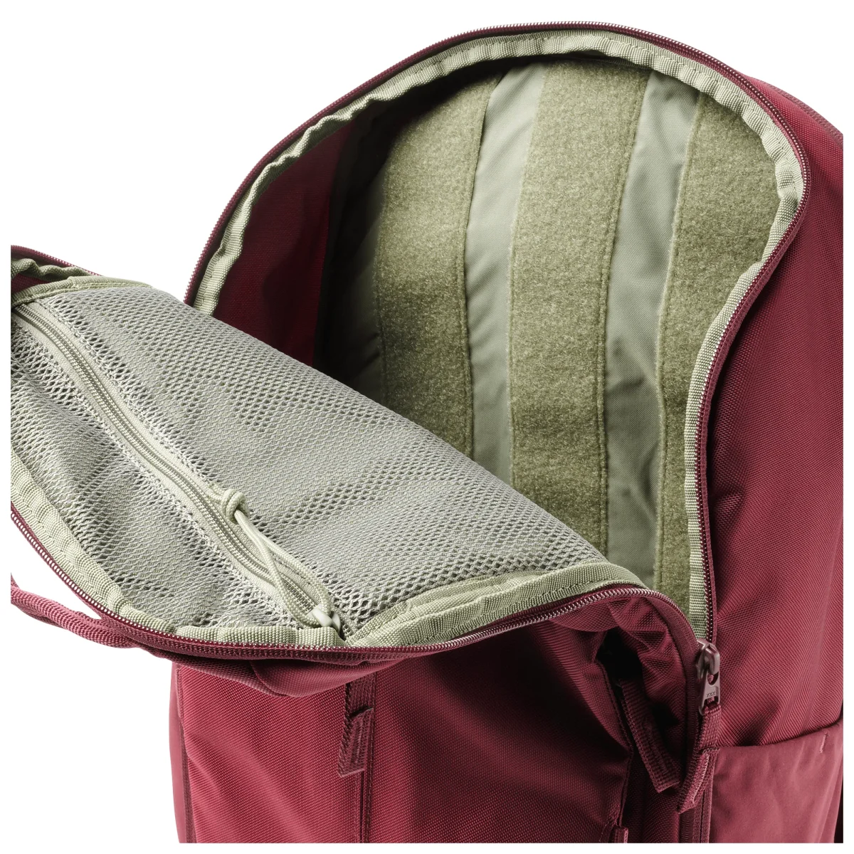 Sulla patta troviamo invece una tasca a rete per aumentare l’organizzazione, ed in un’ottica civile possiamo aggiungere pouch compatibili sfruttando anche le strisce in velcro.