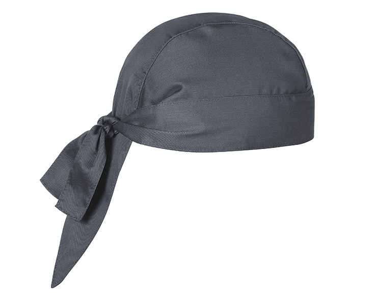 Capello bandana misura personalizzabile con lacci in tessuto. Tessuto 65% poly 35% cotone. Colore GRIGIO scuro tinta unita.