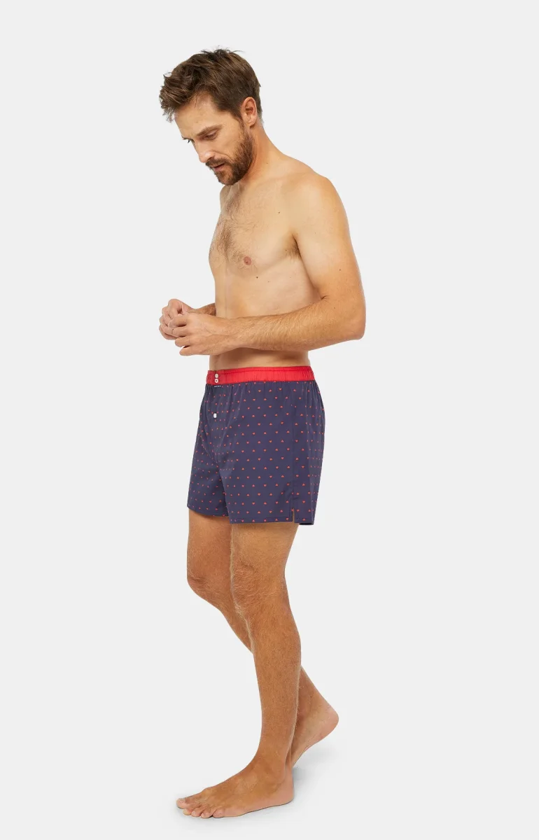 – Caleçon homme de coupe américaine– Empiècement central au dos en forme de U– Intérieur slippé– Ceinture élastiquée et contrastée avec 2 boutons– Braguette fermée par un bouton– Fentes d’aisance côtés– Motif & modèle exclusifs créés à Paris– Confectionné dans nos ateliers partenaires au Maroc