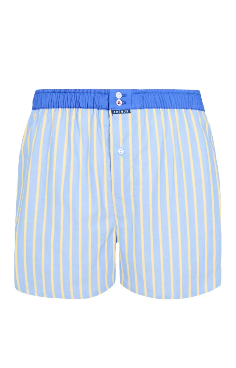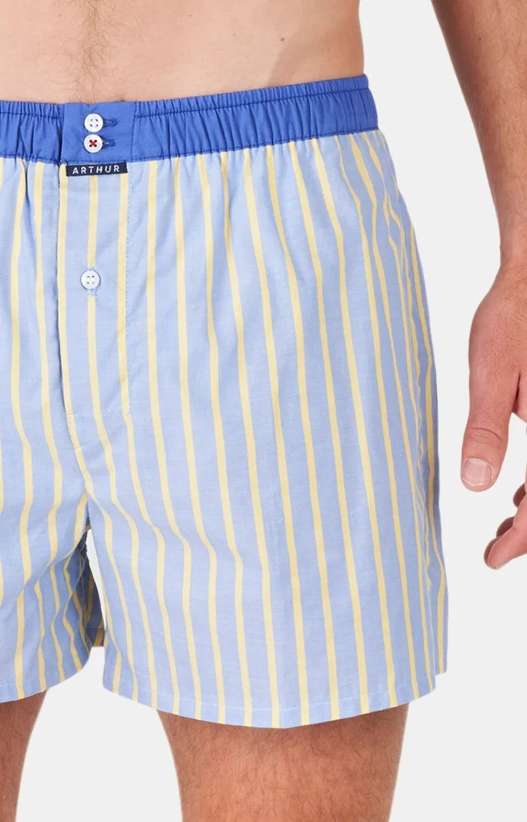 – Caleçon Homme de coupe américaine – Empiècement central au dos en forme de U qui évite les frottements – Ceinture élastiquée et contrastée avec 2 boutons – Braguette fermée par un bouton – Fentes d’aisance côtés – Modèle créé à Paris – Tissu origine Portugal – Confectionné dans nos ateliers partenaires au Maroc