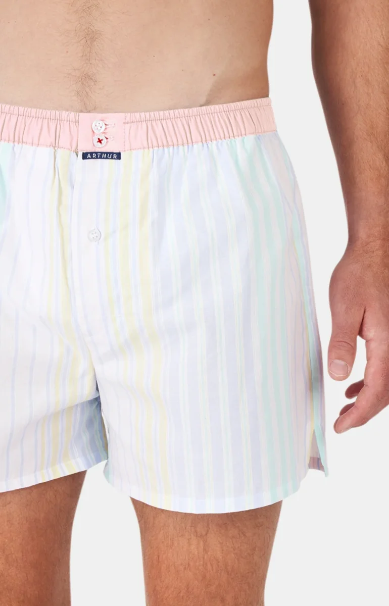 – Caleçon Homme de coupe américaine – Empiècement central au dos en forme de U qui évite les frottements – Ceinture élastiquée et contrastée avec 2 boutons – Braguette fermée par un bouton – Fentes d’aisance côtés – Modèle créé à Paris – Tissu origine Portugal – Confectionné dans nos ateliers partenaires au Maroc