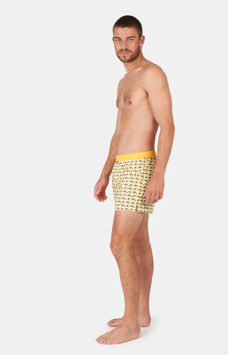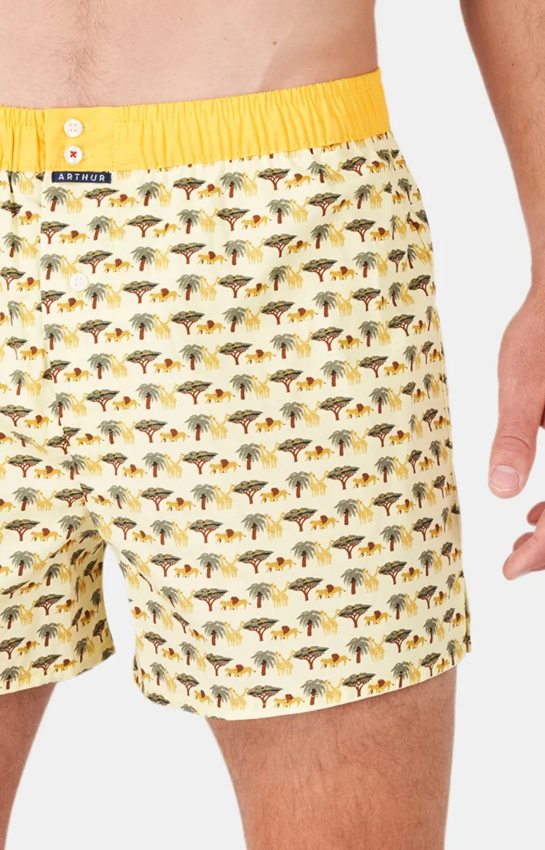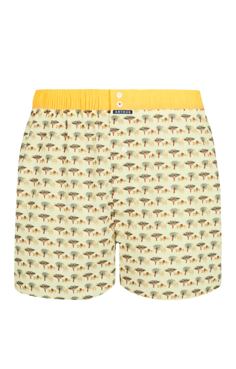 – Caleçon Homme de coupe américaine – Empiècement central au dos en forme de U qui évite les frottements – Ceinture élastiquée et contrastée avec 2 boutons – Braguette fermée par un bouton – Fentes d’aisance côtés – Modèle créé à Paris – Tissu origine Portugal – Confectionné dans nos ateliers partenaires au Maroc