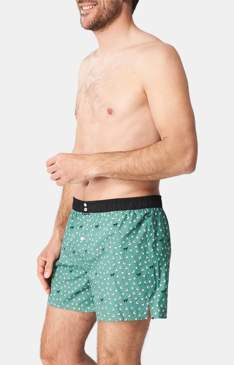 – Caleçon homme de coupe américaine – 100% coton issu de l’agriculture biologique – Empiècement central au dos en forme de U qui évite les frottements – Ceinture élastiquée et contrastée avec 2 boutons – Braguette fermée par un bouton – Fentes d’aisance côtés – Motif exclusif créé à Paris – Confectionné dans nos ateliers […]