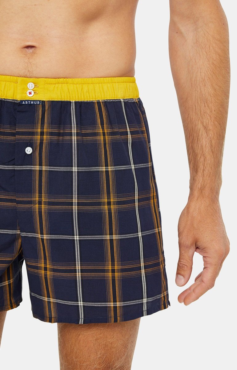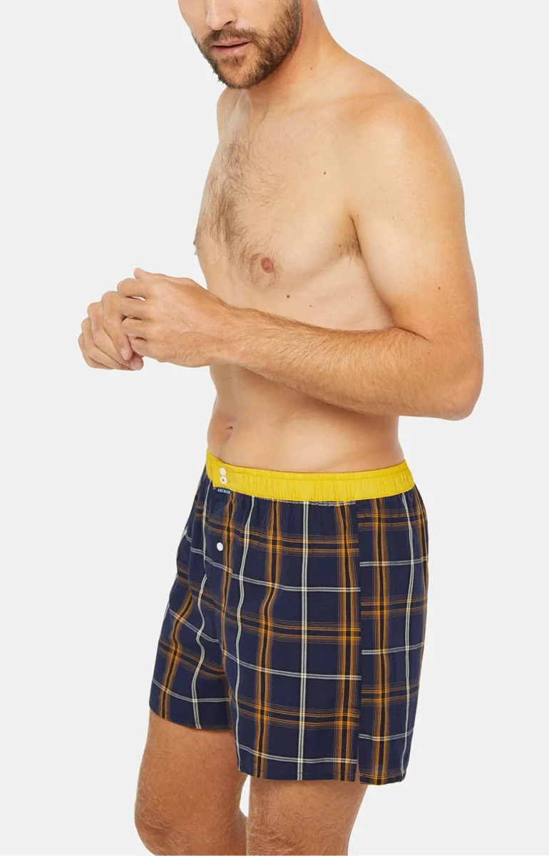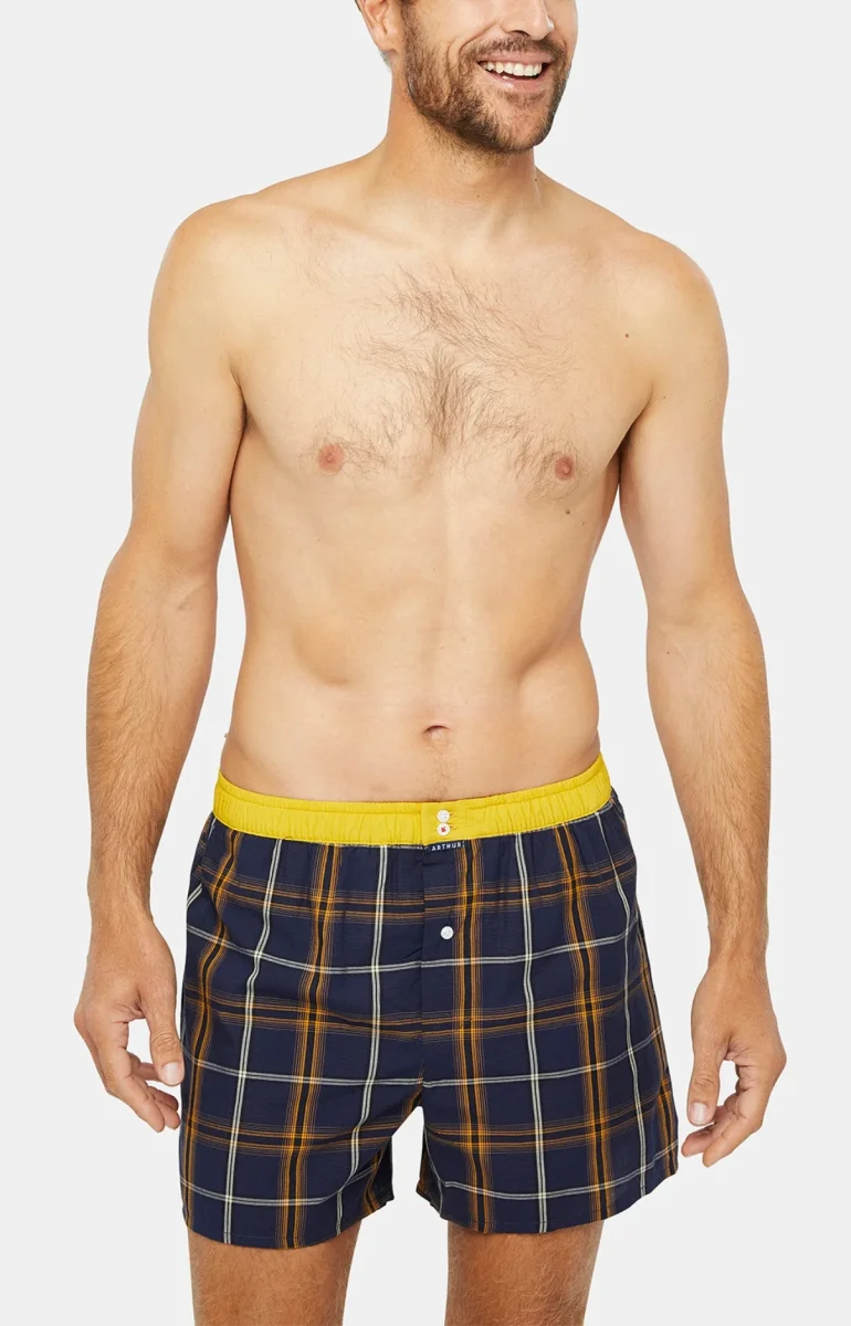 Avec ce caleçon homme, vous allierez le rétro et le moderne de la manière la plus originale qui soit ! Armé de sa ceinture élastiquée jaune éclatante et de ses motifs tartan toujours classes, ce modèle satisfera votre vision personnelle d’un style homme réussi. Pour compléter l’ensemble, sa protection anti-frottements sur le fessier et son intérieur slippé vous garantiront un maintien sans équivalent, pour un quotidien dans un confort parfaits, toute la journée !