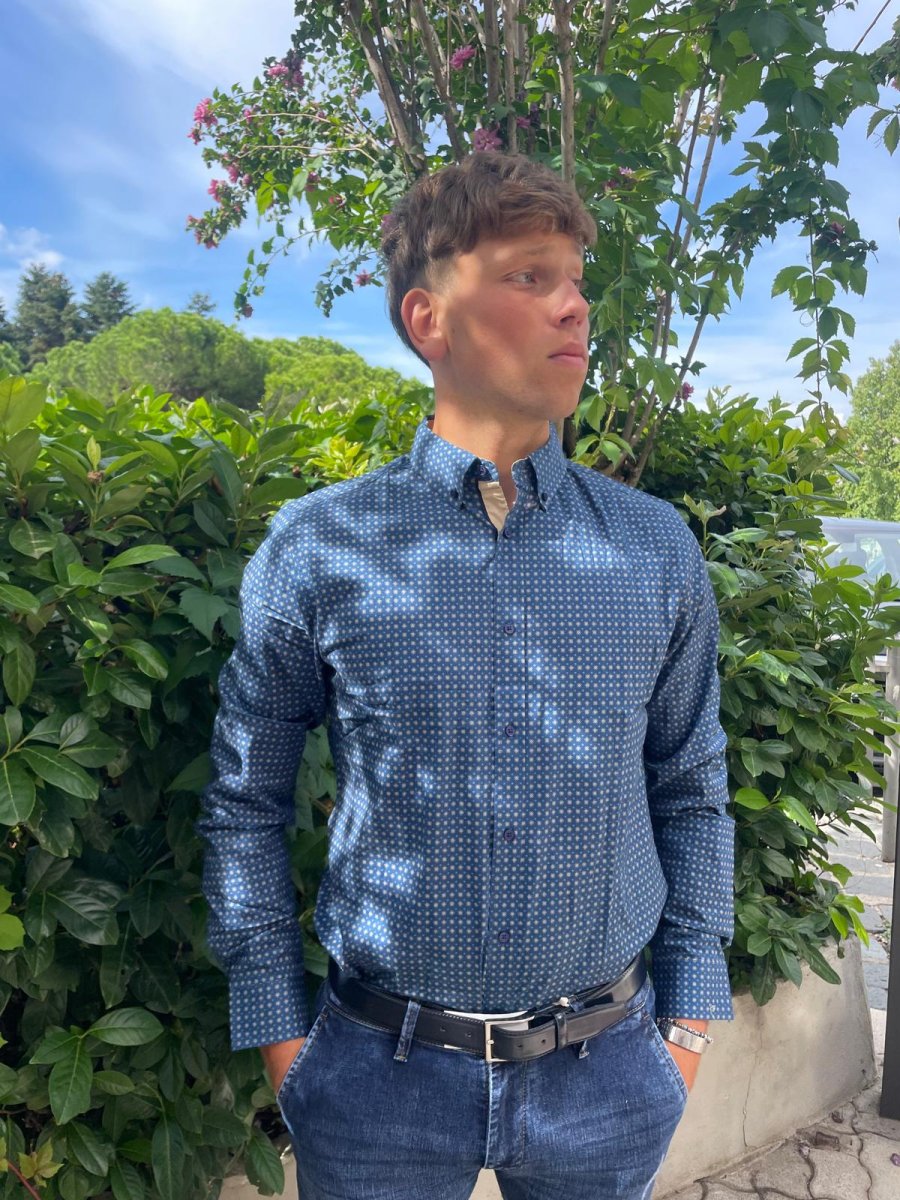 camicia fantasia uomo slim elasticizzata -La spedizione avviene con corriere GLS in 24/48 h -Tutti gli ordini verranno evasi entro le ore 13:00 dal lunedi al venerdi -Per info e assistenza contattare il numero Whatsapp: 3345794681