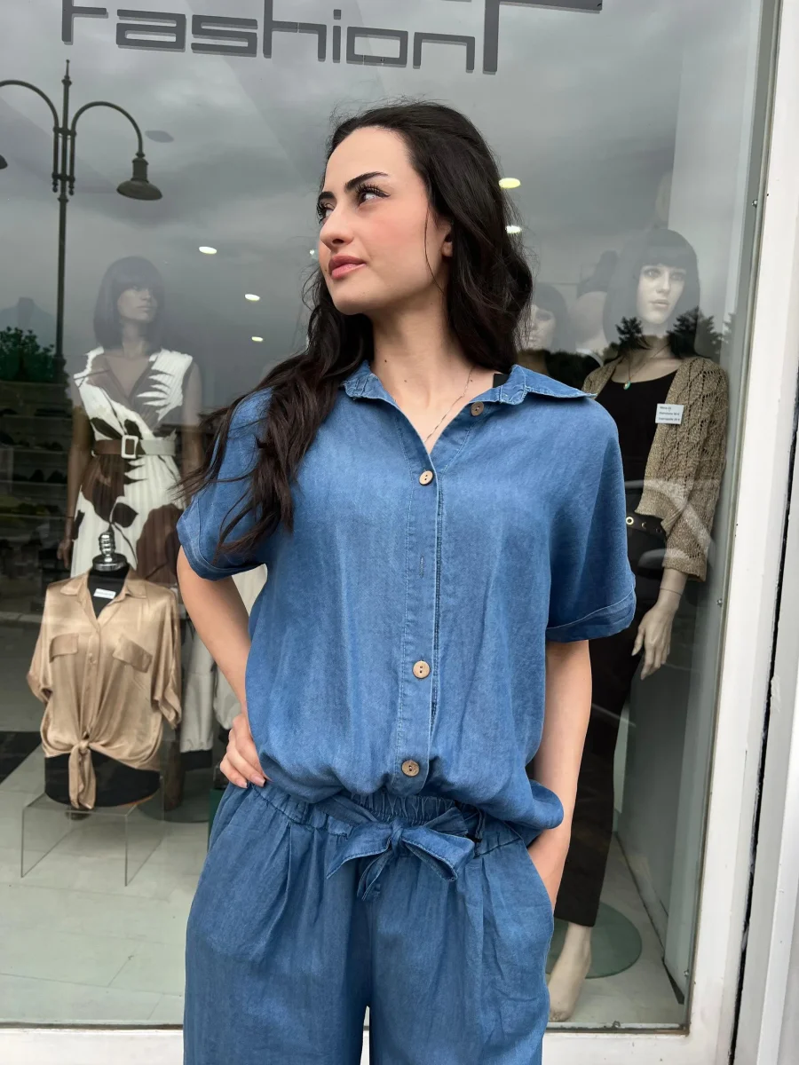 🔹 Tessuto chambray traspirante, effetto denim chiaro
