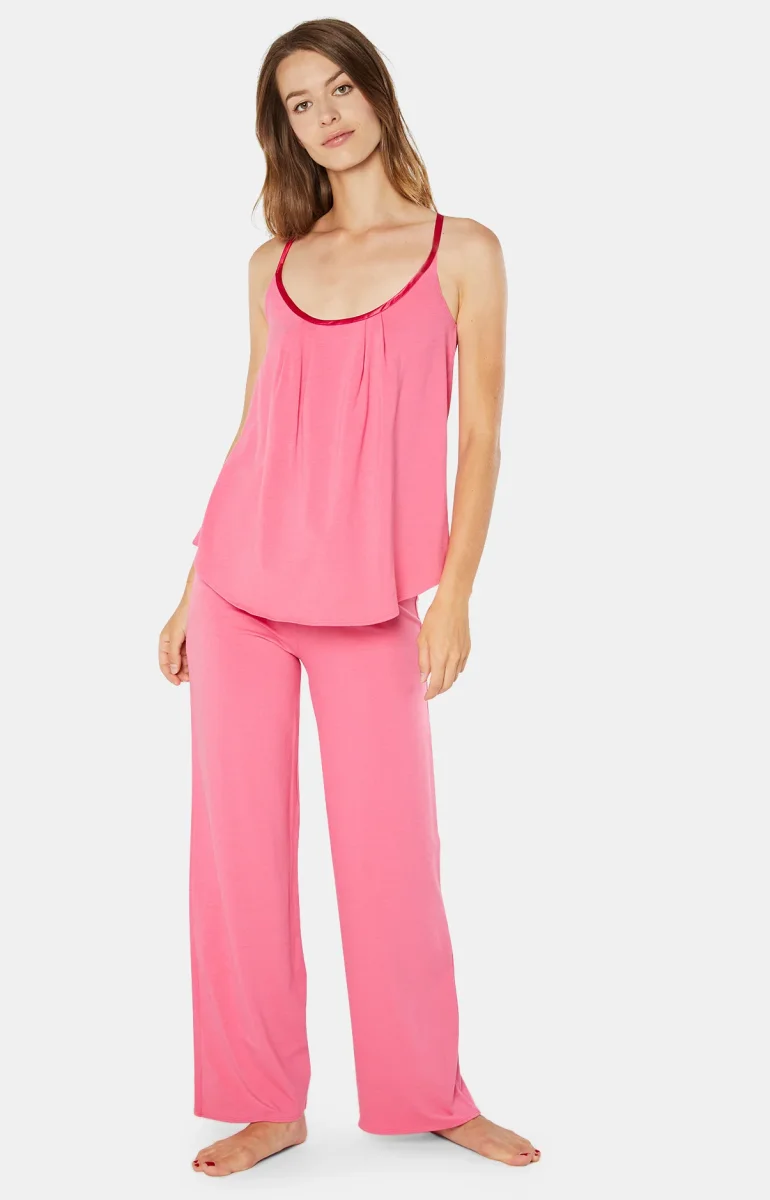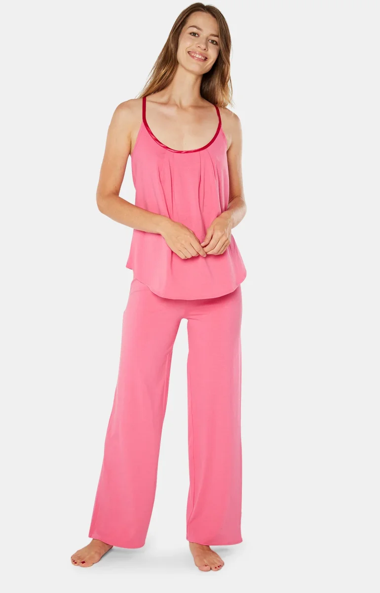 Cette tenue d’intérieur femme rose Candy en coton, modal et élasthanne allie un débardeur et un pantalon fluides pour vous apporter, chez vous, l’essentiel : le confort, le bien-être, et un style coloré et uni qui vous ira à merveille. Parce que flâner à la maison, ce n’est pas rien, Arthur est là pour vous ! Cette tenue est également idéale pour dormir.