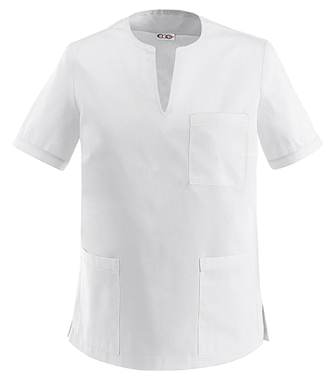 Casacca DONNA mezza manica, collo a goccia, con due tasche sul fondo e un taschino porta penna, tessuto 100% cotone, colore bianco.