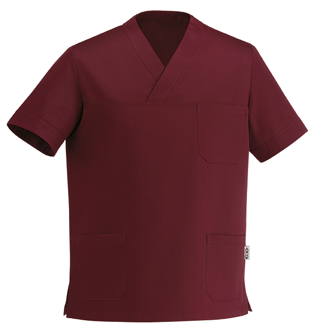 Casacca unisex mezza manica, collo a V, con due tasche sul fondo e un taschino porta penna, tessuto 65% poly 35% cotone, colore BORDEAUX.