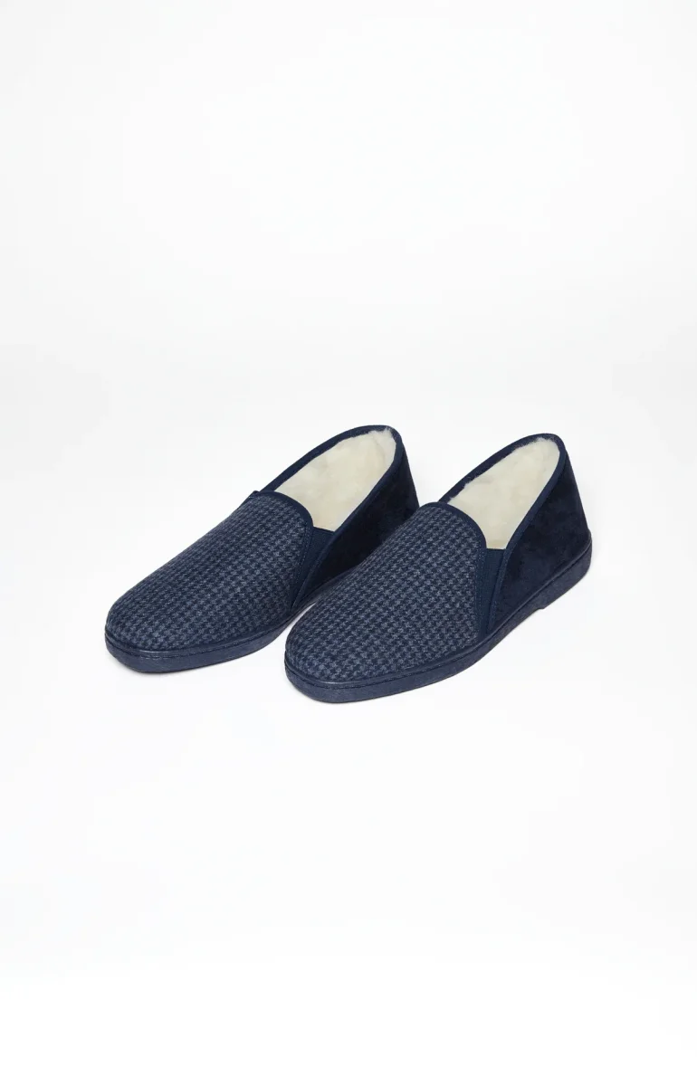 Le style ARTHUR pour garder vos pieds au chaud à la maison. – Chaussons homme – Doublure intérieure en laine – Semelle injectée anti-dérapante – Motif exclusif dessiné à Paris – Fabriquées en France