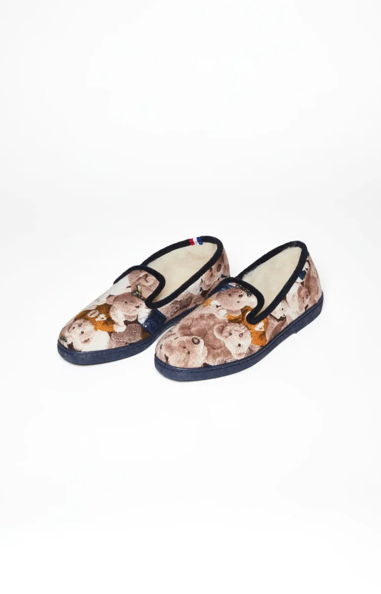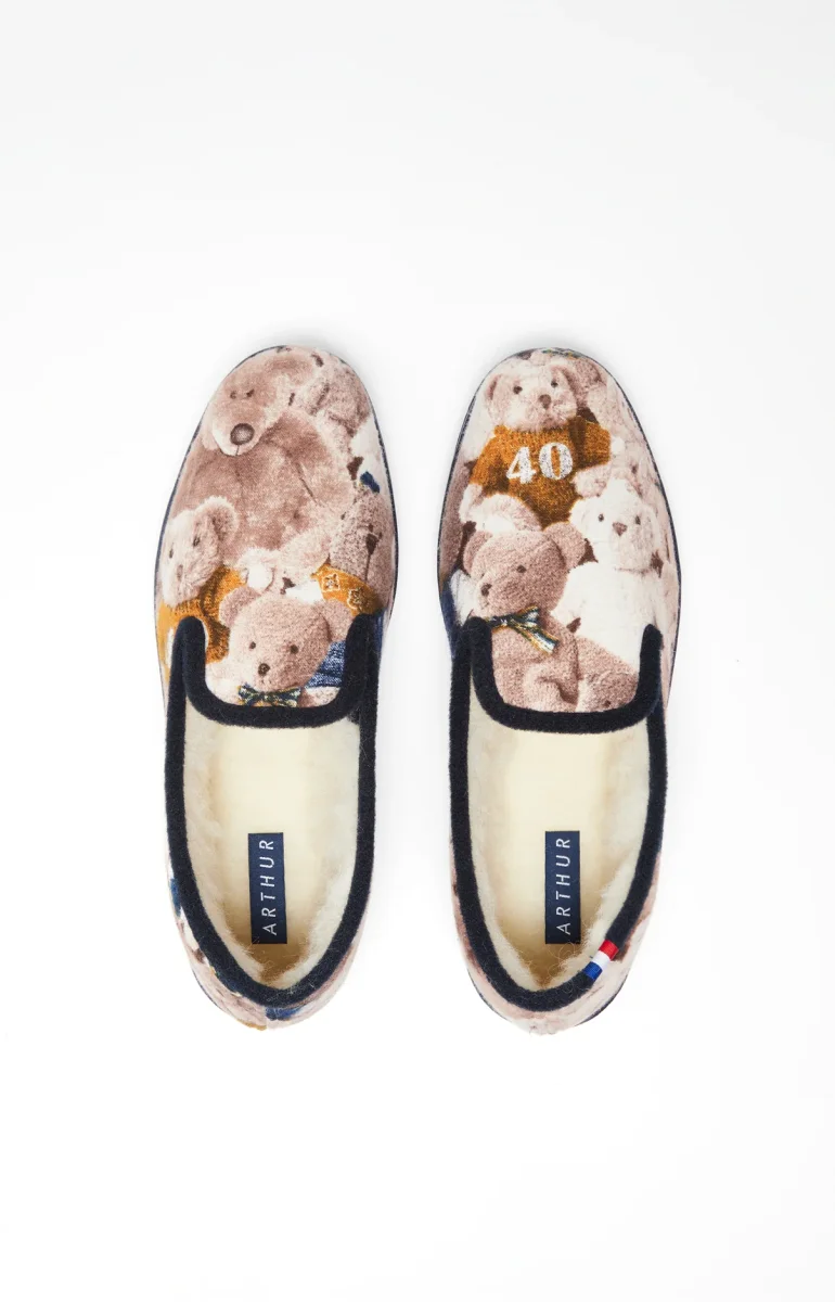Le style ARTHUR pour garder vos pieds au chaud à la maison. – Chaussons homme – Doublure intérieure en laine – Semelle injectée anti-dérapante – Motif exclusif dessiné à Paris – Fabriquées en France