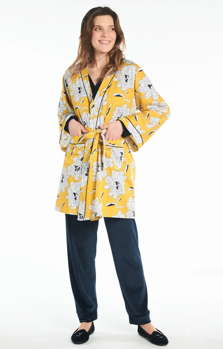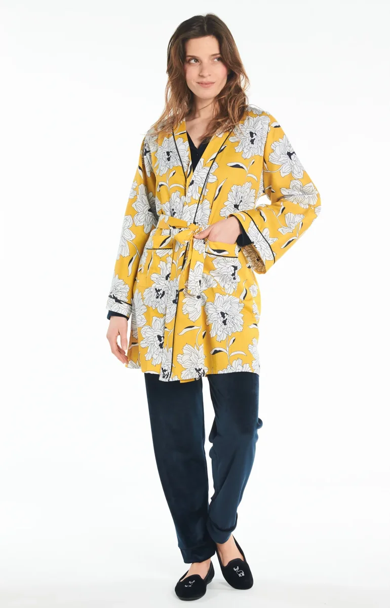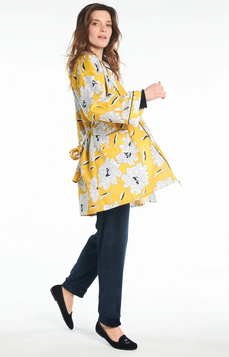 Avec sa coupe si caractéristique, ce kimono femme 100% coton vous transportera au pays du Soleil-Levant grâce à sa calligraphie florale et ses couleurs chaudes. Aussi doux et confortable que tendance, vous pourrez le porter chaque saison sans qu’il ne vous prive de la liberté que vous méritez, grâce à sa ceinture élastiquée réglable.