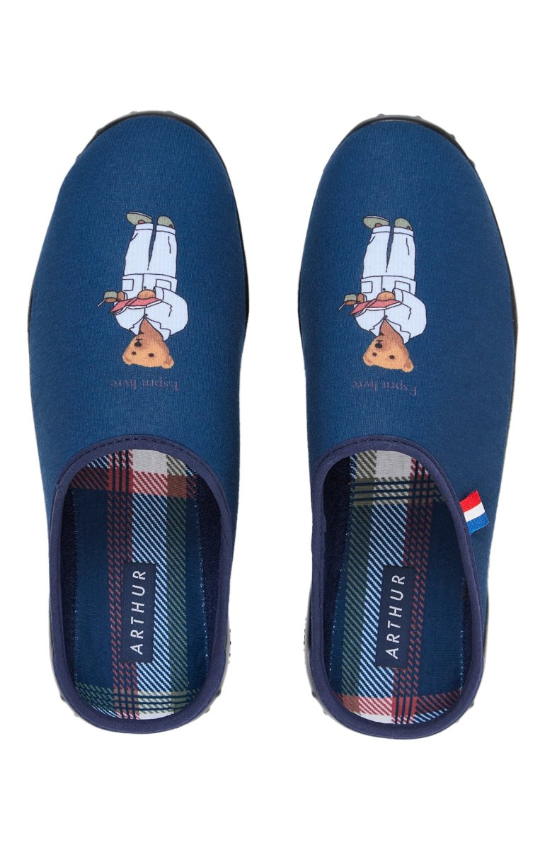 – Chaussons homme forme mules – Extérieur en velours avec sérigraphie – Idéales en intérieur, comme en extérieur grâce à leur semelle en mousse de polyuréthane (avec mémoire de forme) – Motif exclusif créé à Paris – Fabriqués dans notre atelier partenaire en Espagne
