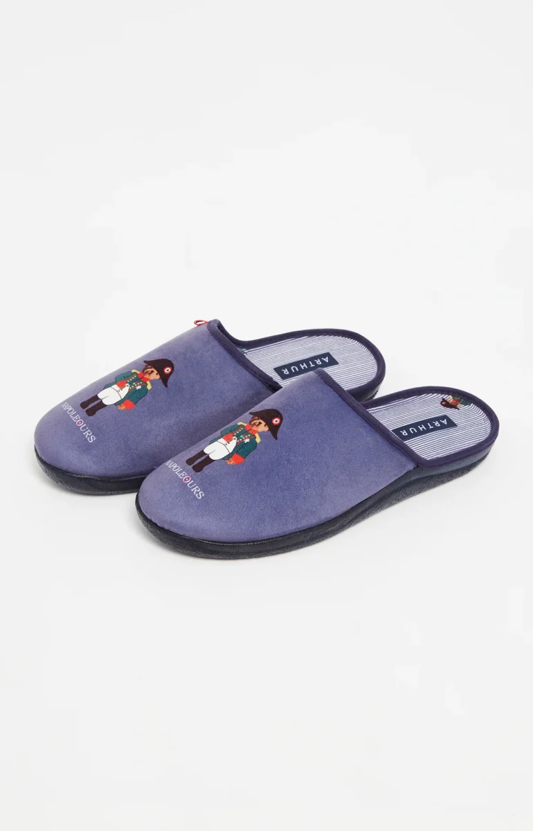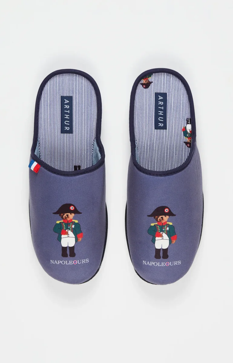 Cet hiver, soyez “Napoléours” jusqu’au bout des orteils ! Ces chaussons homme au dessus en jersey et à la sérigraphie unique, originale et décalée possèdent une semelle à mémoire de forme qui feront passer des moments de bonheur à vos gambettes.