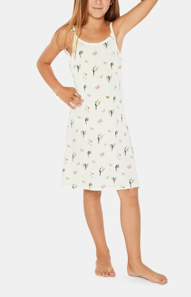 Avec cette nuisette birdie, garantissez à votre fille des nuits remplies de douceur. En jersey 100% coton issu de l’agriculture biologique, cette nuisette respecte l’environnement, tout en se parant d’un irrésistible petit oiseau de paradis. Quoi de mieux pour s’envoler au pays des rêves ?