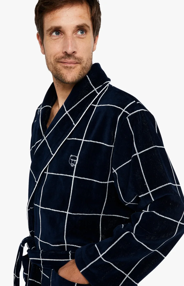 – Robe de chambre homme – 100% coton – Extérieur velours – Intérieur éponge bouclette – Col châle – Forme ceinturée – Finitions passepoilées – 2 poches plaquées – Longueur environ 120 cm – Motif exclusif créé à Paris – Confectionné dans notre atelier partenaire au Portugal – Petite astuce : Lavez avant utilisation pour […]