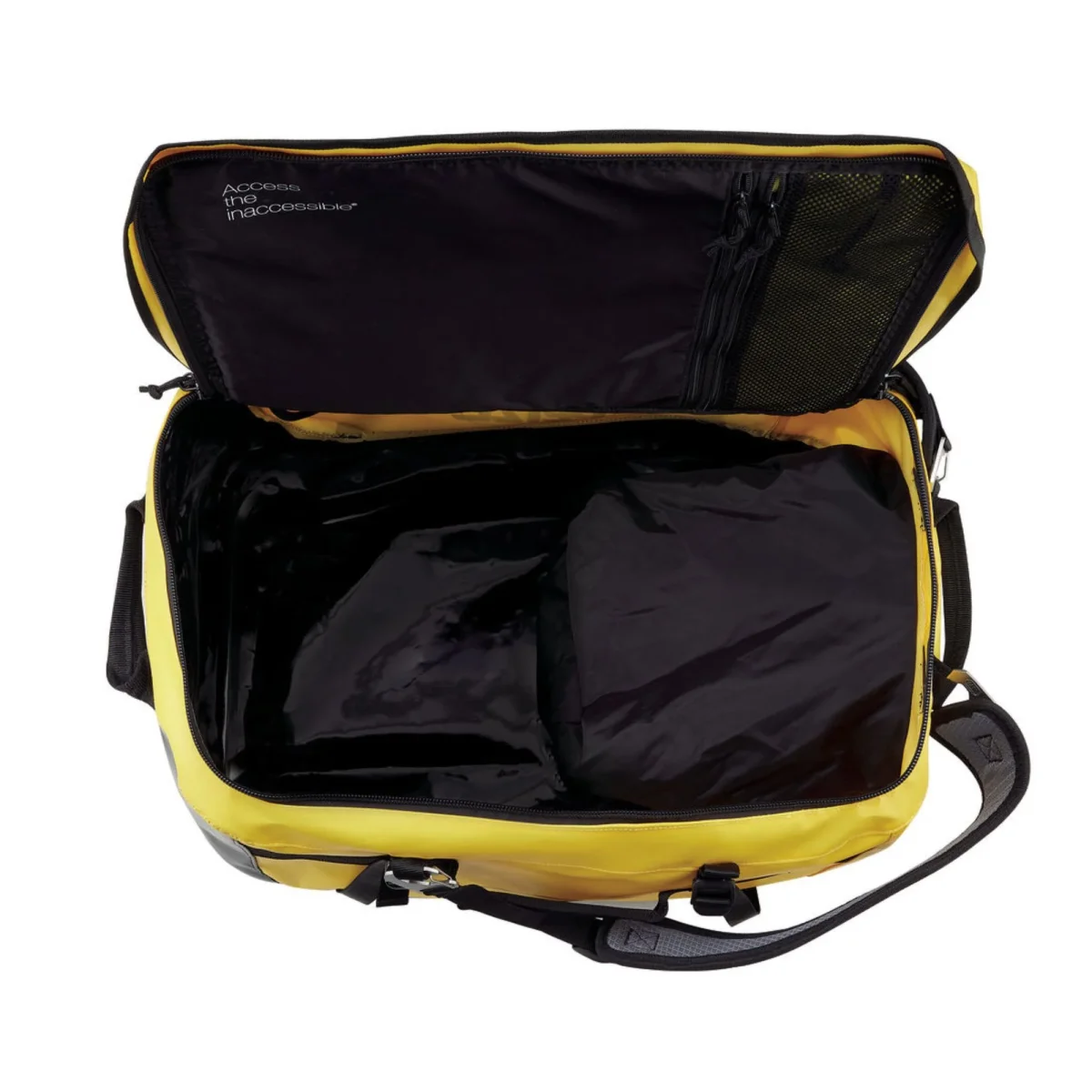 La Duffel 65 รจ progettata anche per tenere pulita la tua roba, infatti รจ presente una grande tasca laterale per separare casco o scarponi dal resto dell’inventario!