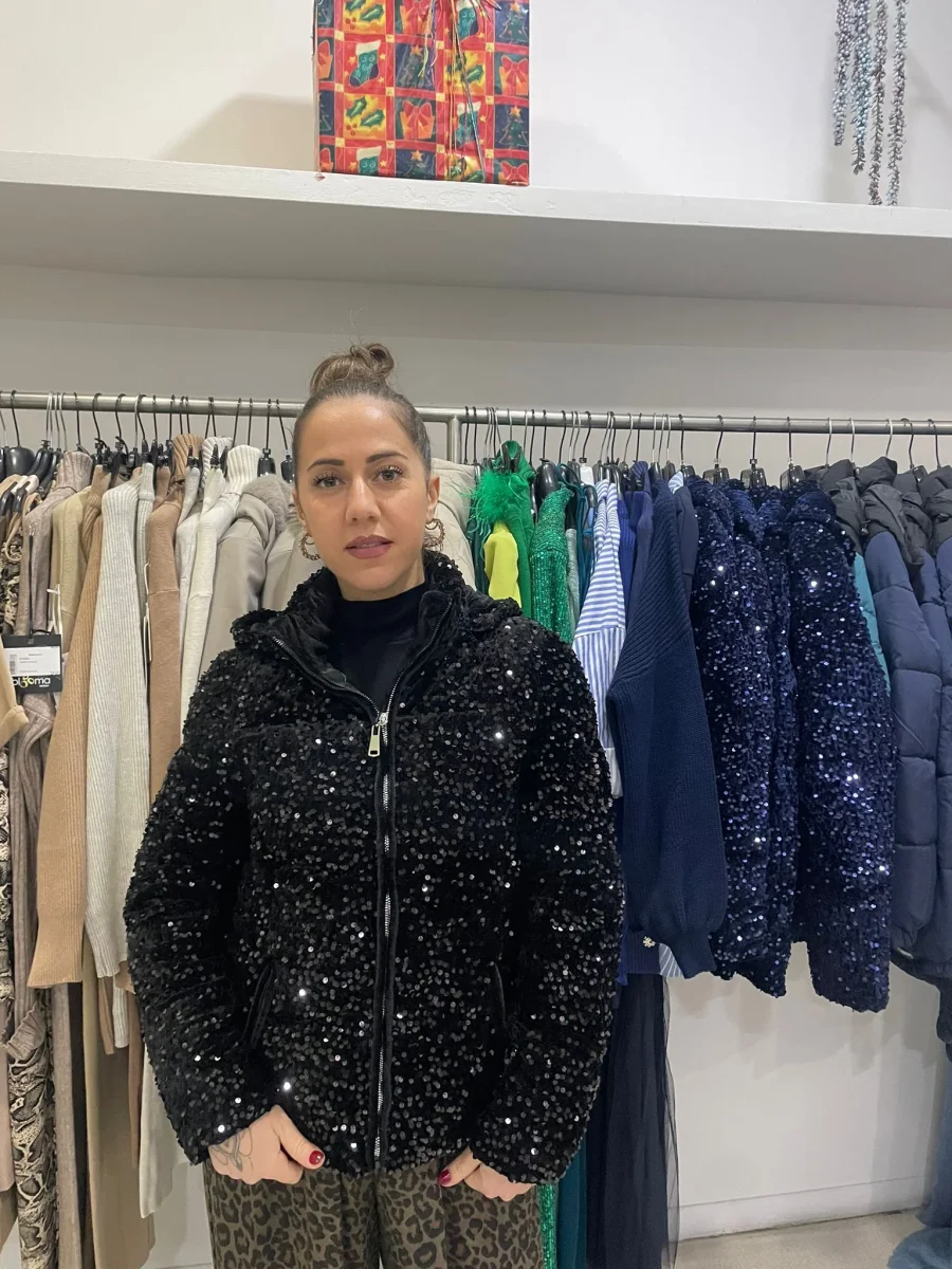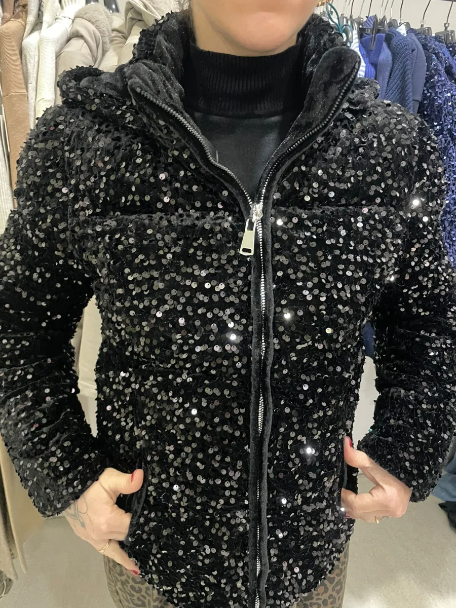 piumino velluto con paillettes