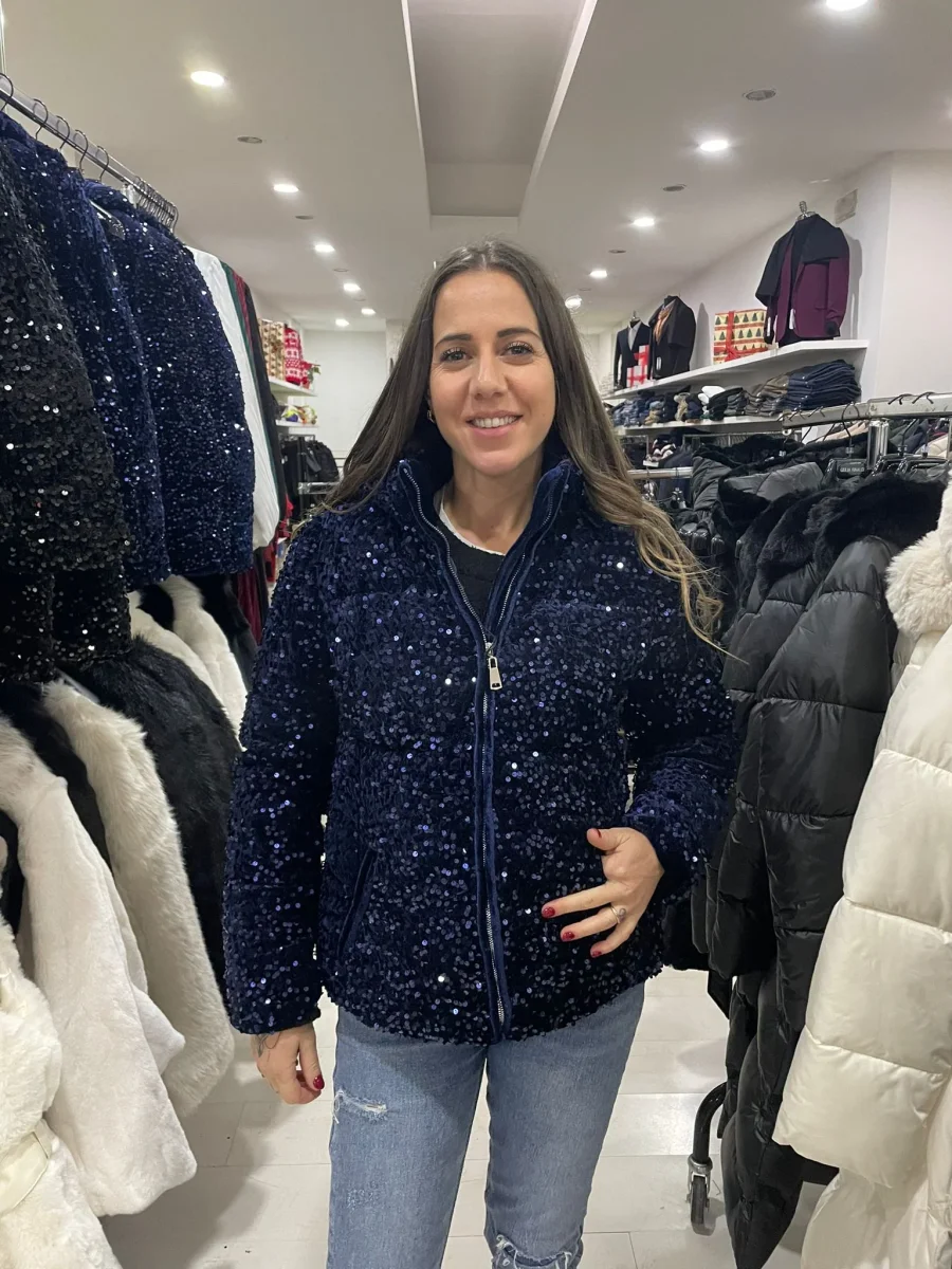 piumino velluto con paillettes -La spedizione avviene con corriere GLS in 24/48 h -Tutti gli ordini verranno evasi entro le ore 13:00 dal lunedi al venerdi -Per info e assistenza contattare il numero Whatsapp: 334 5794 681