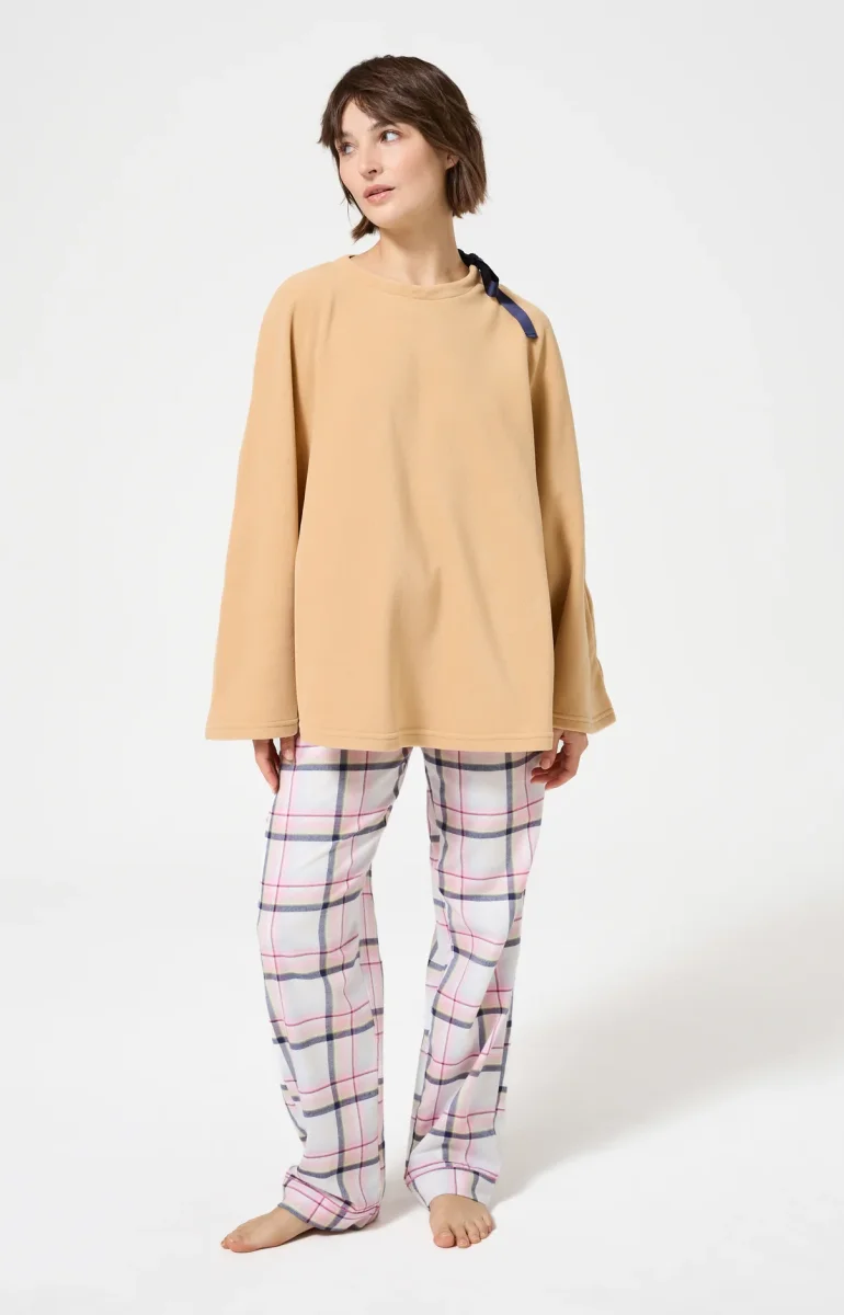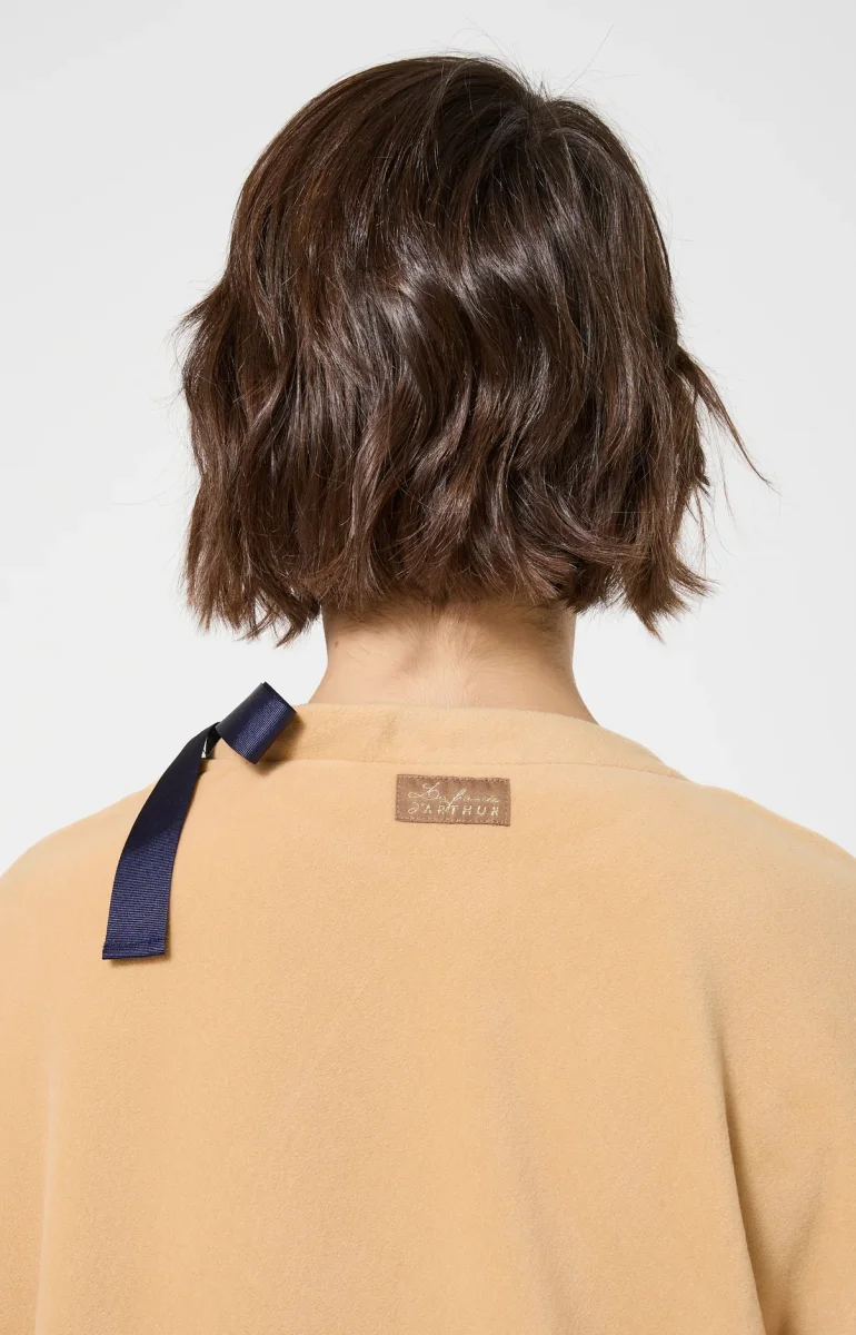 Le “Must Have” des plus frileuses – Poncho ou Robe de chambre Femme – Couleur camel– Micro-polaire chaude 100% polyester – Manches 3/4 – Lien en gros grain à nouer au niveau de l’encolure – Modèle exclusif créé à Paris – Confectionné dans nos ateliers partenaires au Portugal