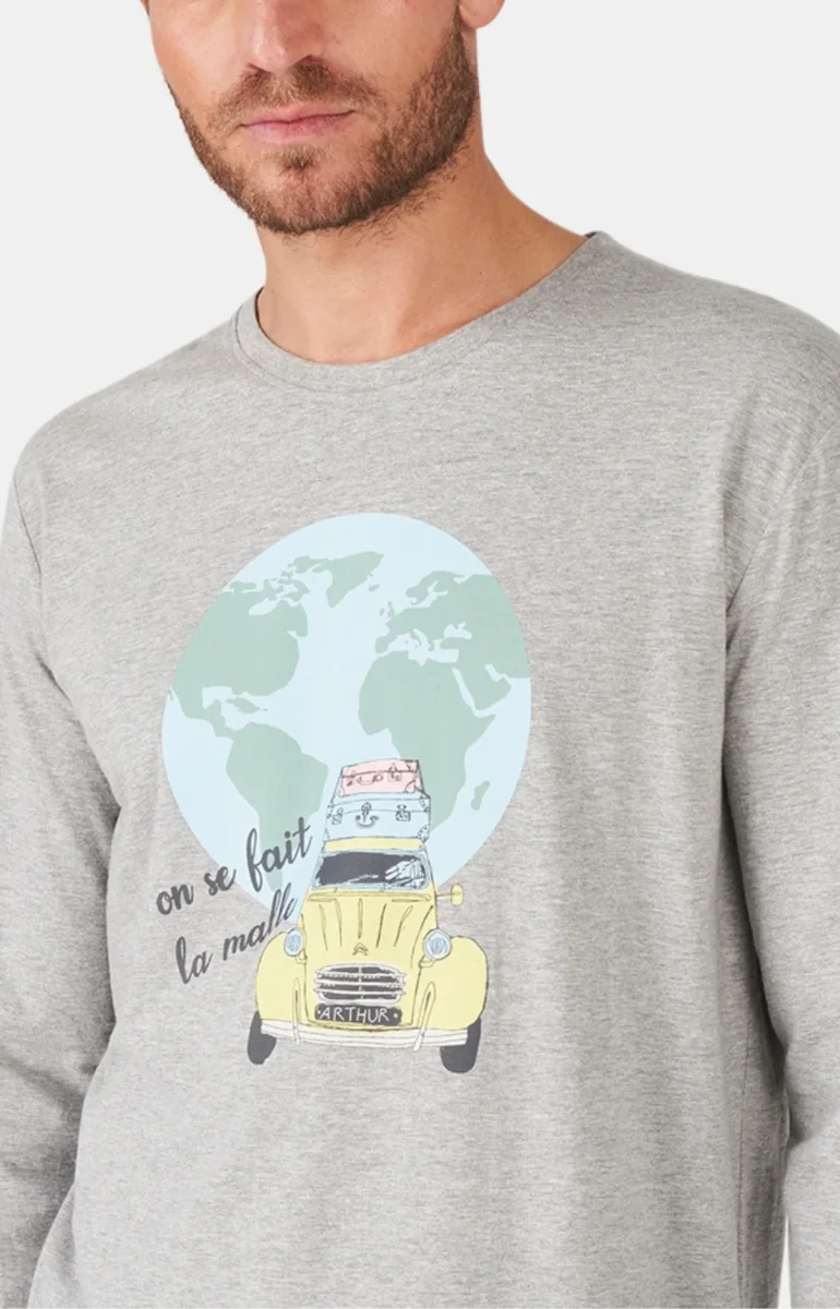 – Ensemble de pyjama Homme – 100% coton issu de l’agriculture biologique – Tee-shirt uni col cond, manches longues – Sérigraphie poitrine – Pantalon de pyjama en jersey de coton avec ceinture élastiquée, cordon de serrage et 2 poches côtés – Motif en licence exclusive avec Citroën créé à Paris – Confectionné dans nos ateliers […]