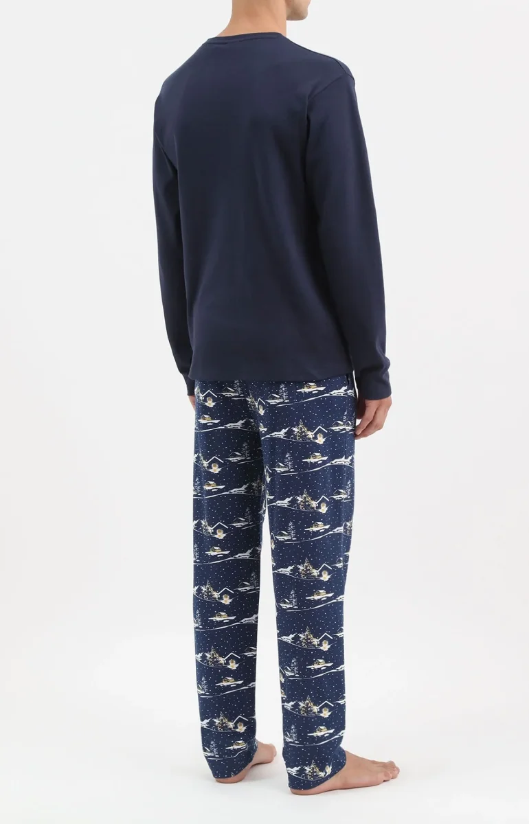 – Ensemble de Pyjama Homme – 100% coton – Tee-shirt uni col V, manches longues – Sérigraphie poitrine – Pantalon de pyjama avec ceinture élastiquée, cordon de serrage et 2 poches côtés – Motif exclusif créé à Paris – Confectionné dans nos ateliers partenaires en Inde