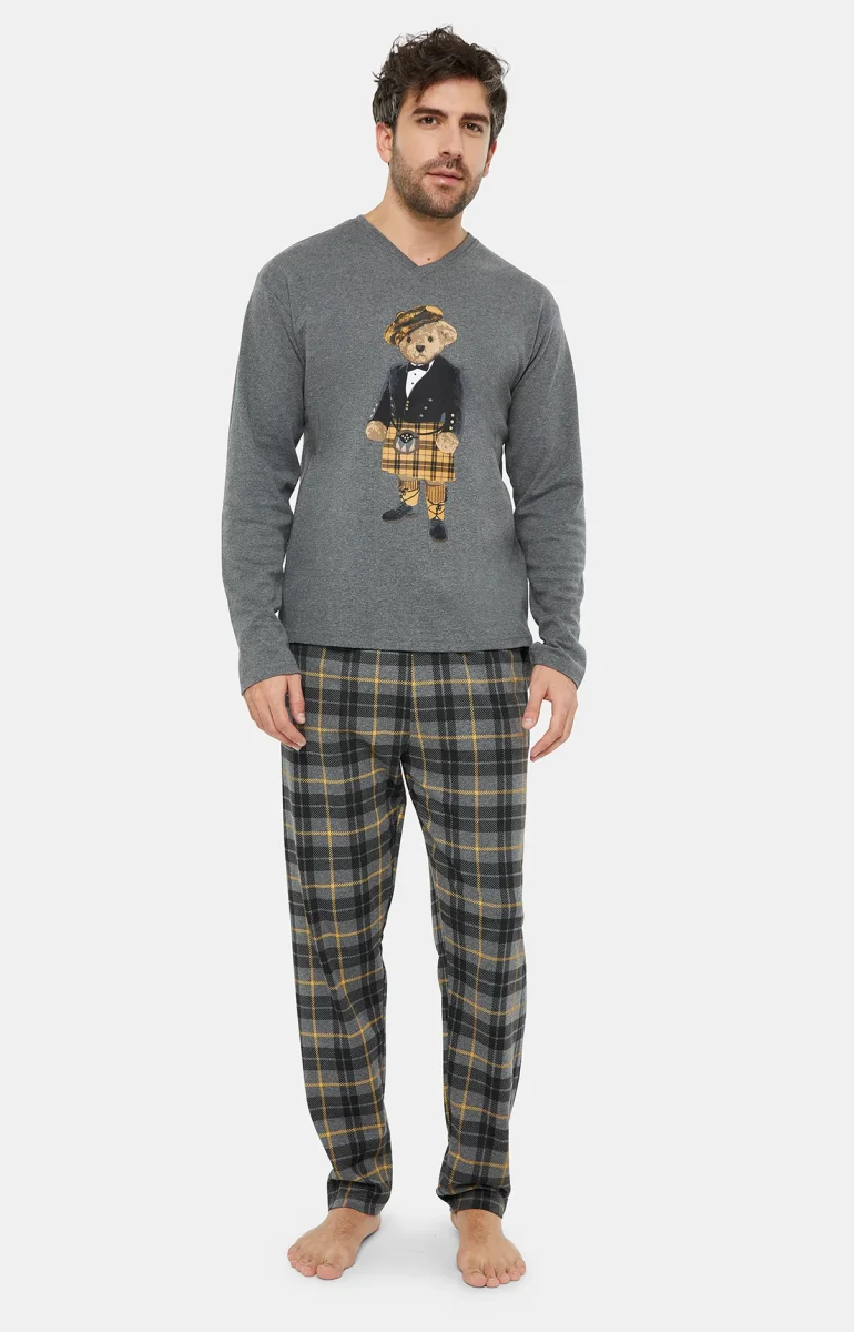 – Pyjama homme long en coton avec cordon de serrage