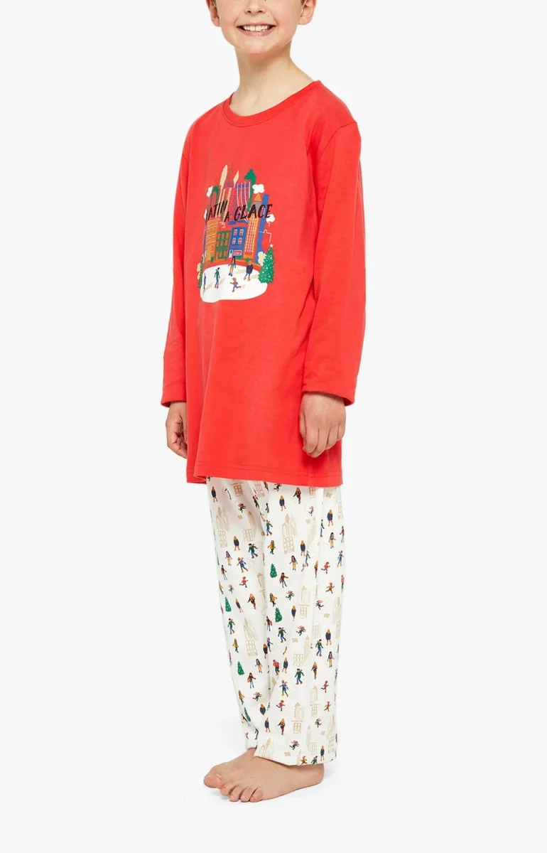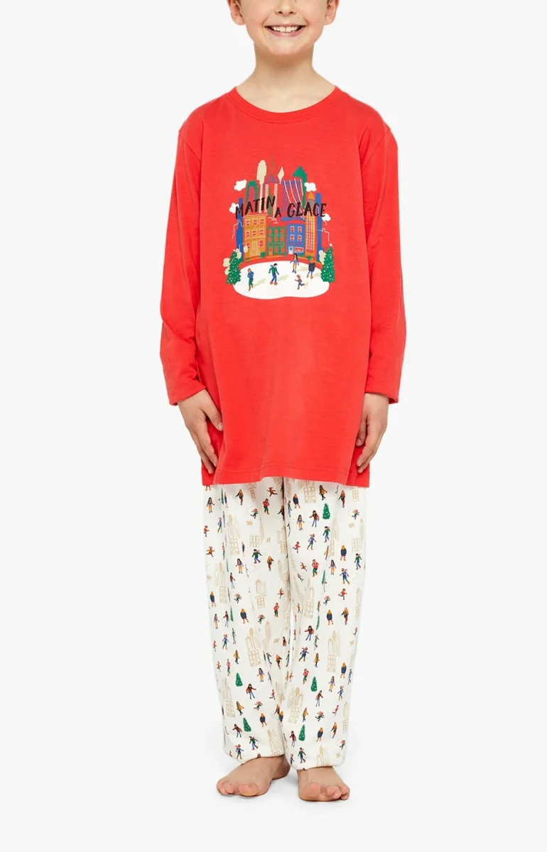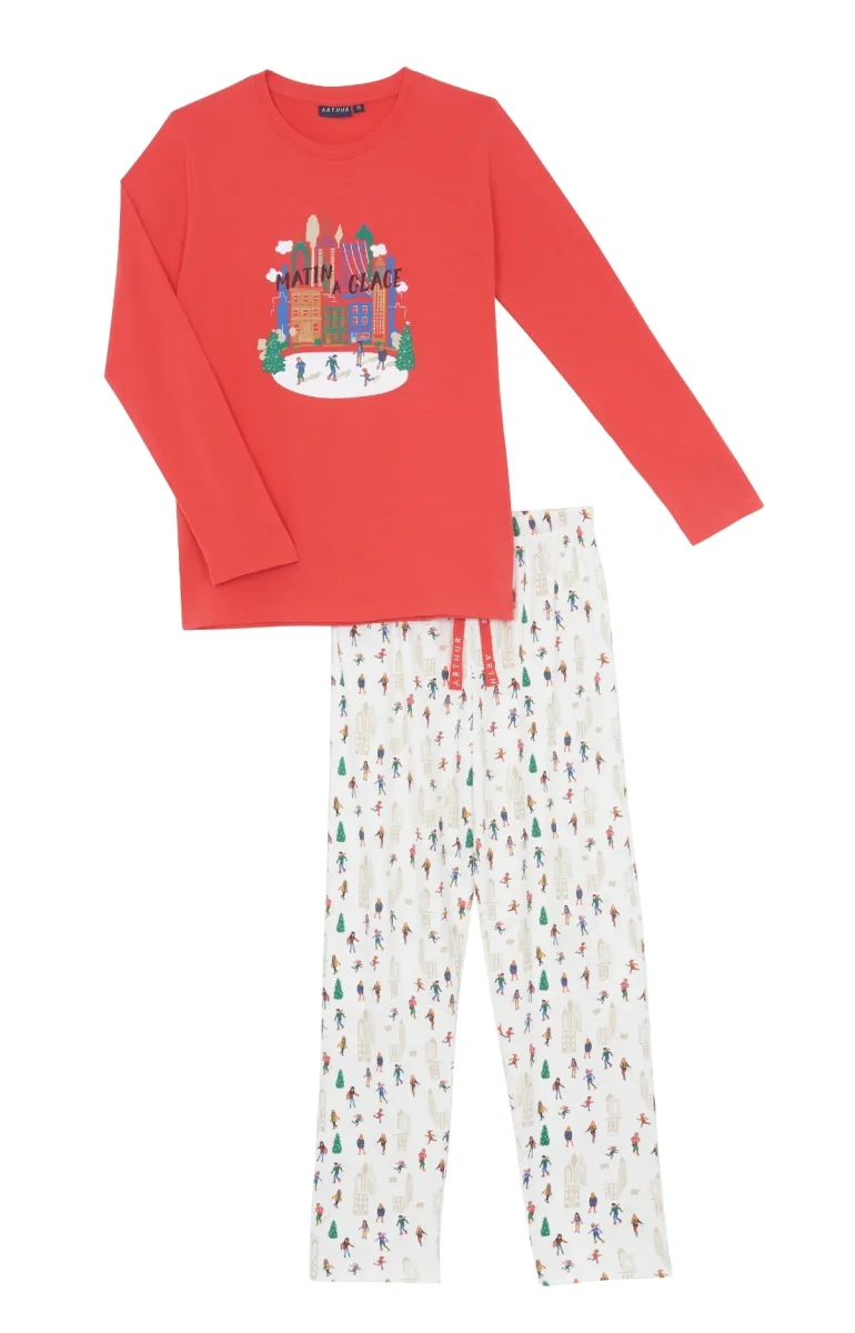 – Ensemble de pyjama enfant – 100% coton issu de l’agriculture biologique – Tee-shirt uni à manches longues et col rond – Sérigraphie poitrine – Pantalon de pyjama avec ceinture élastiquée et cordon de serrage – Motif exclusif créé à Paris – Confectionné dans nos ateliers partenaires en Inde