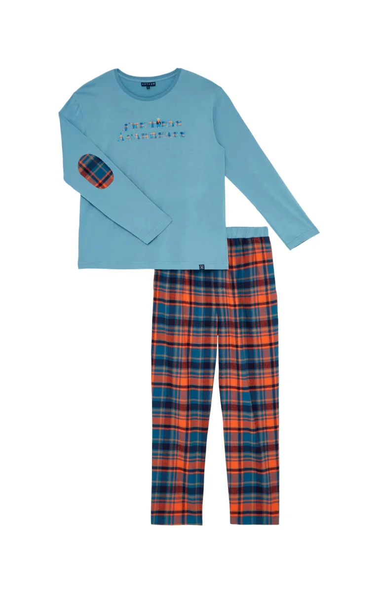 – Ensemble de pyjama Homme – 100% coton issu de l’agriculture biologique – Tee-shirt uni manches longues, col rond en maille jersey – Sérigraphie poitrine – Coudières contrastées – Pantalon de pyjama en flanelle de coton “Pilou Pilou” – Ceinture élastiquée, cordon de serrage et 2 poches côtés – Motif exclusif créé à Paris – […]