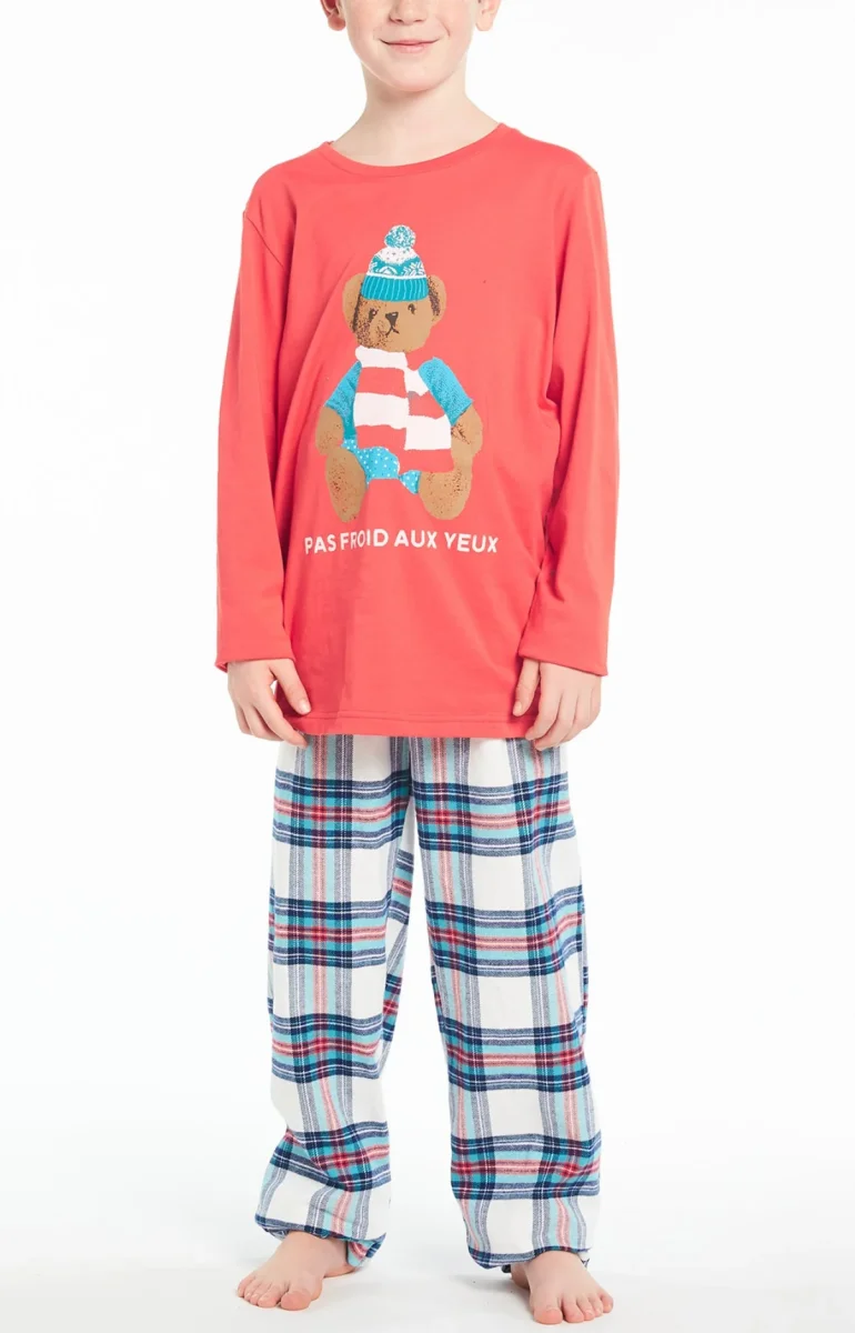 Entre le classique du tartan et la tendance adorable de son haut rouge, ce pyjama long enfant fait la différence niveau style. Mais aussi côté confort : que ce soit pour les nuits de votre enfant, ou bien ses heures de détente à la maison, ce modèle 100% coton et 100% chaud lui apportera tout ce dont il a besoin pour se sentir à l’aise !