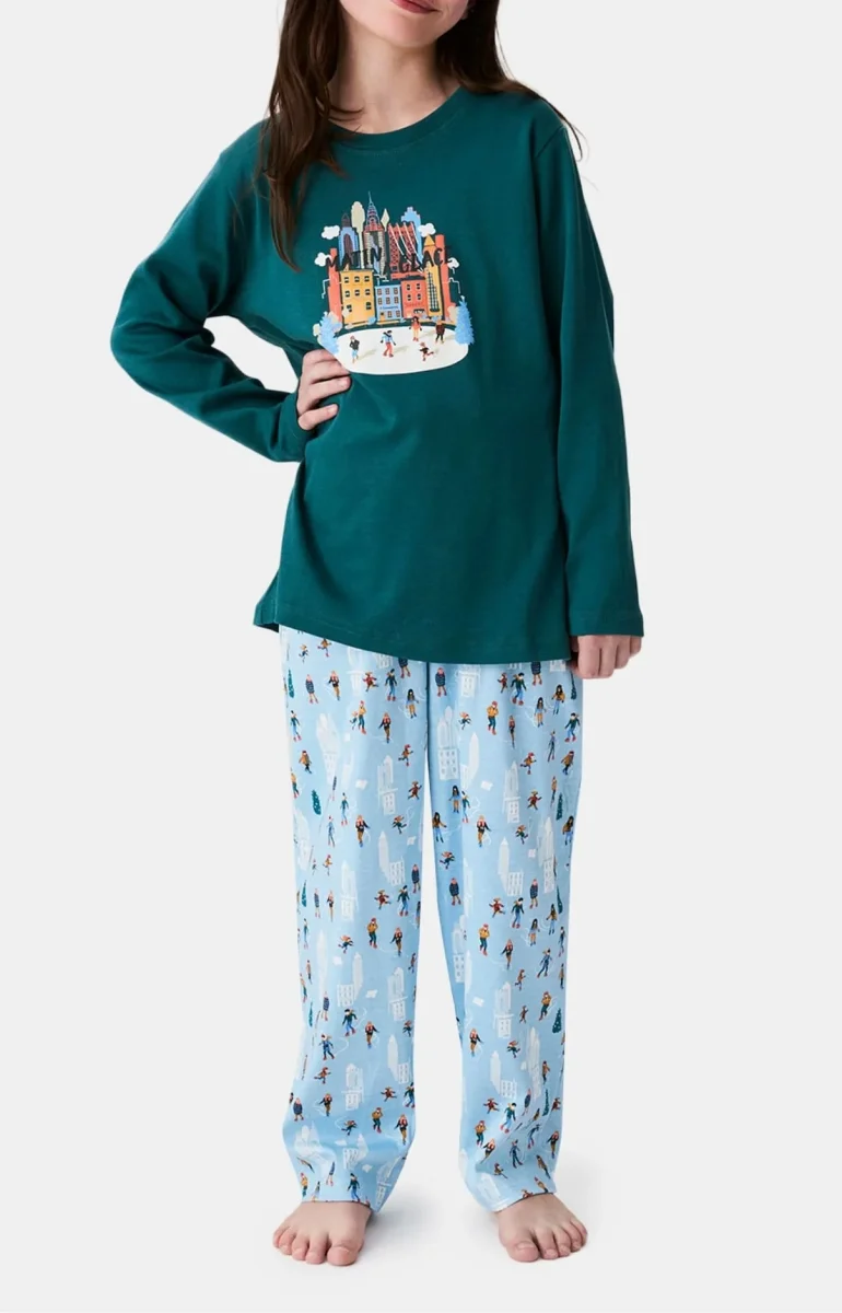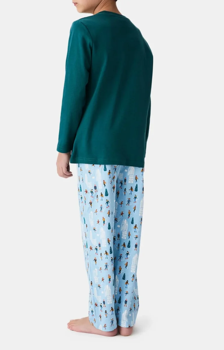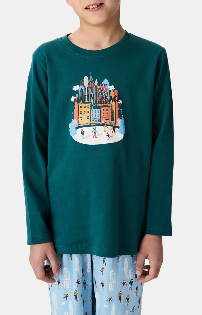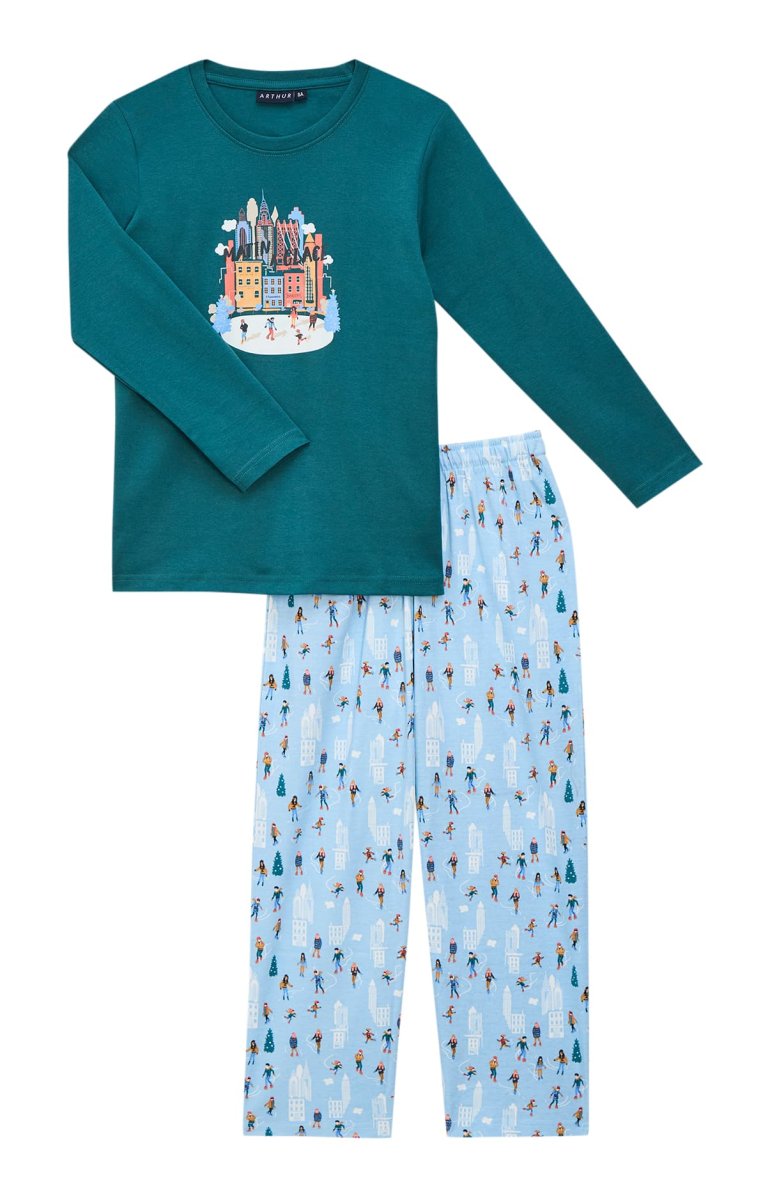 – Ensemble de Pyjama Enfant – 100% coton – Tee-shirt uni à manches longues et col rond – Sérigraphie poitrine – Pantalon de pyjama imprimé avec ceinture élastiquée et cordon de serrage – Motif exclusif créé à Paris – Confectionné dans nos ateliers partenaires en Inde