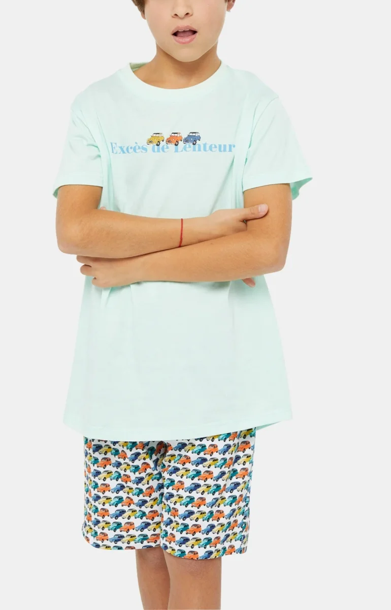 – Ensemble pyjama enfant court – 100% coton issu de l’agriculture biologique – Tee-shirt uni à manches courtes et col rond – Sérigraphie poitrine – Bermuda élastiqué avec cordon de serrage et deux poches côtés – Motif exclusif créé à Paris en licence exclusive avec Citroën – Confectionné dans nos ateliers partenaires en Turquie
