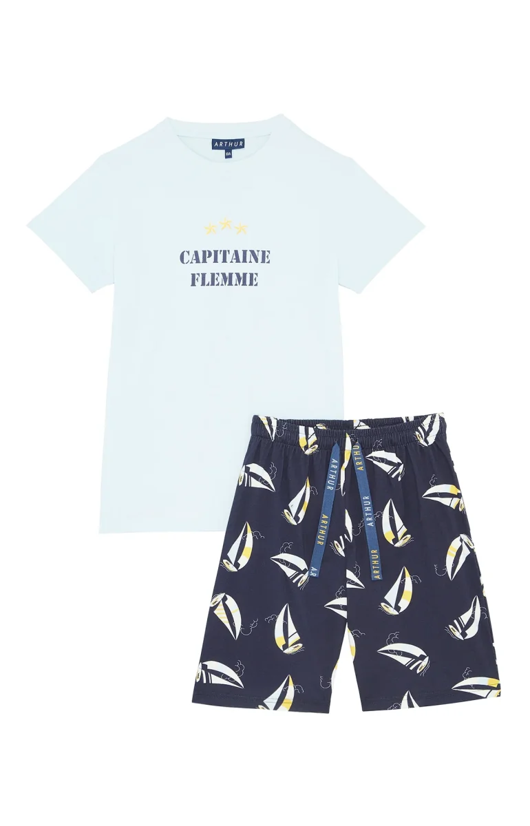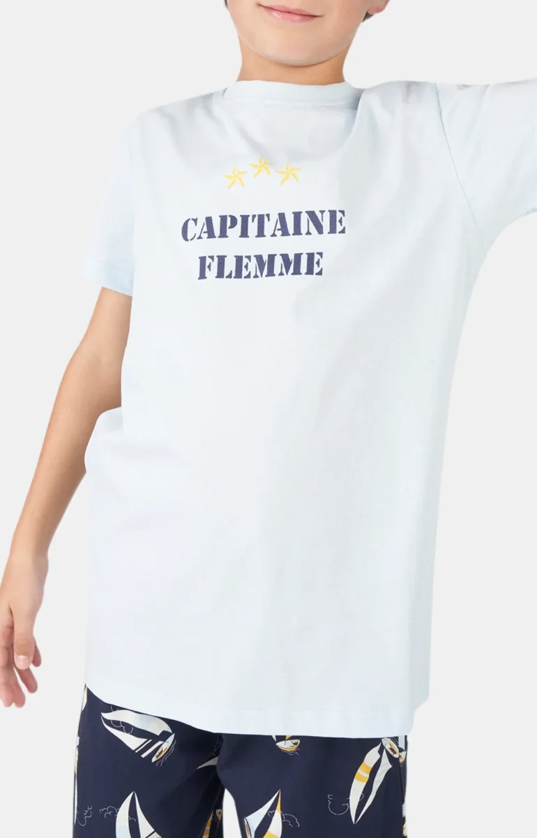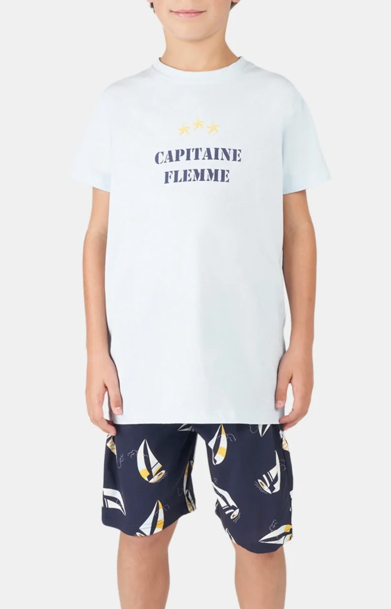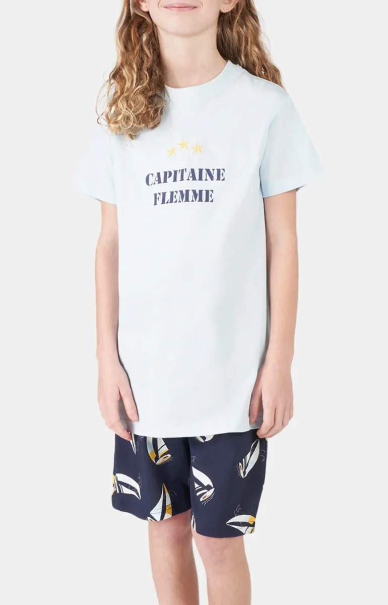 – Ensemble de pyjama enfant court – 100% coton issu de l’agriculture biologique – Tee-shirt uni à manches courtes et col rond – Sérigraphie poitrine – Bermuda élastiqué avec cordon de serrage – Motif exclusif créé à Paris – Confectionné dans nos ateliers partenaires en Turquie