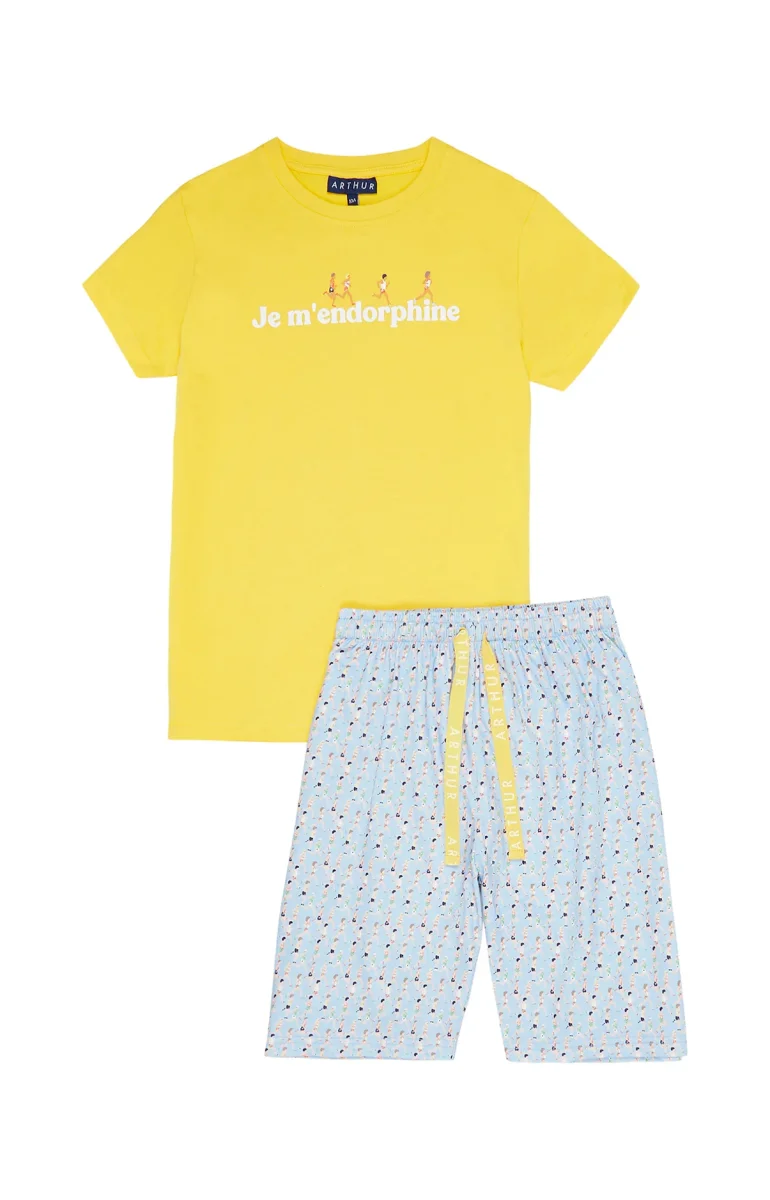 – Ensemble pyjama enfant court – 100% coton issu de l’agriculture biologique – Tee-shirt uni à manches courtes et col rond – Sérigraphie poitrine – Bermuda élastiqué avec cordon de serrage et deux poches côtés – Motif exclusif créé à Paris – Confectionné dans nos ateliers partenaires en Turquie