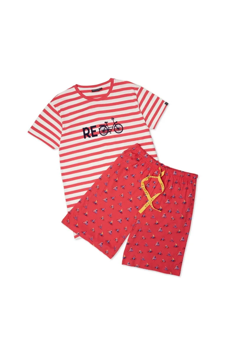 Ne pédalez plus dans le vide pour atteindre le sommeil ! Avec ce pyjama, ôde à la petite reine et s’inscrivant plus que jamais dans une tendance dans l’air du temps, montrez votre amour du vélo dans un confort sans pareil. 100% coton issu de l’agriculture biologique, il est respectueux de l’environnement, tandis que son alliance de motifs et de rayures vous offrira un style nocture fantaisie pour franchir, en tête, la ligne d’arrivée de l’élégance décalée.