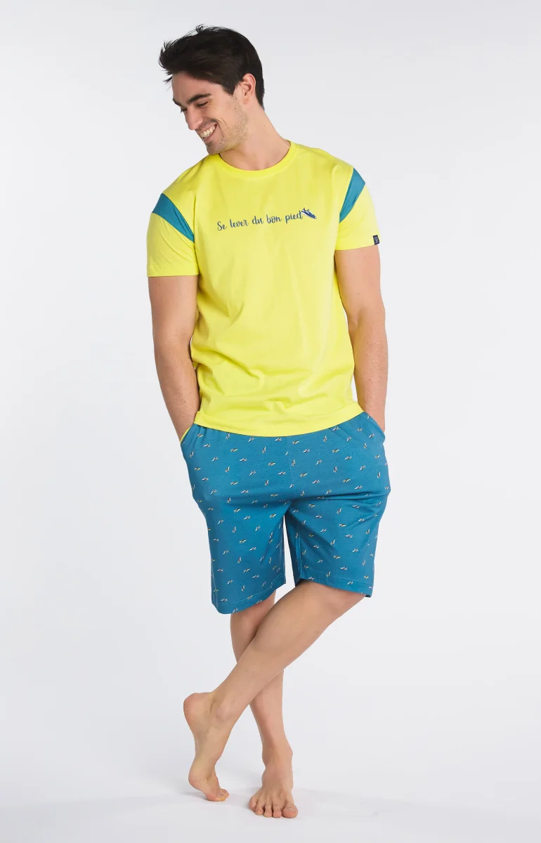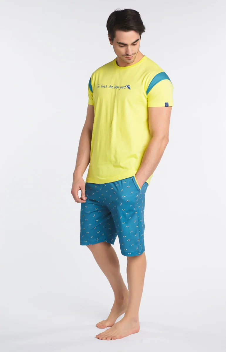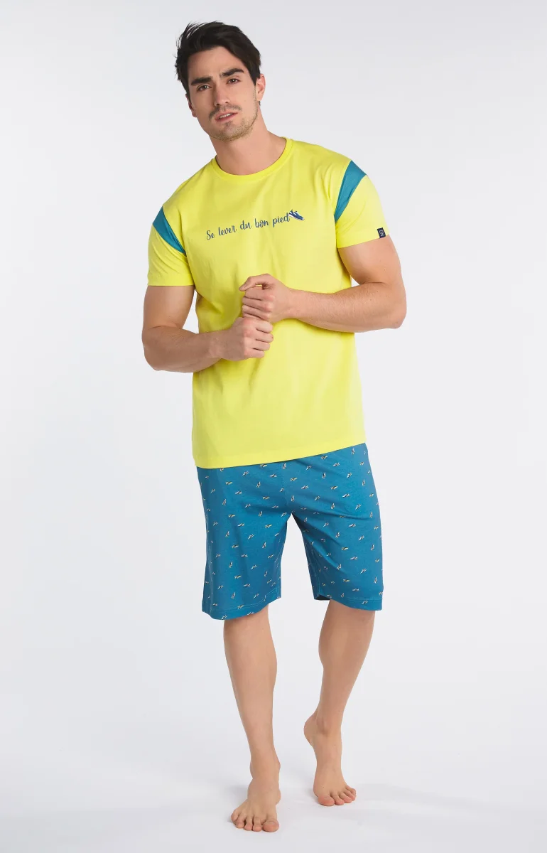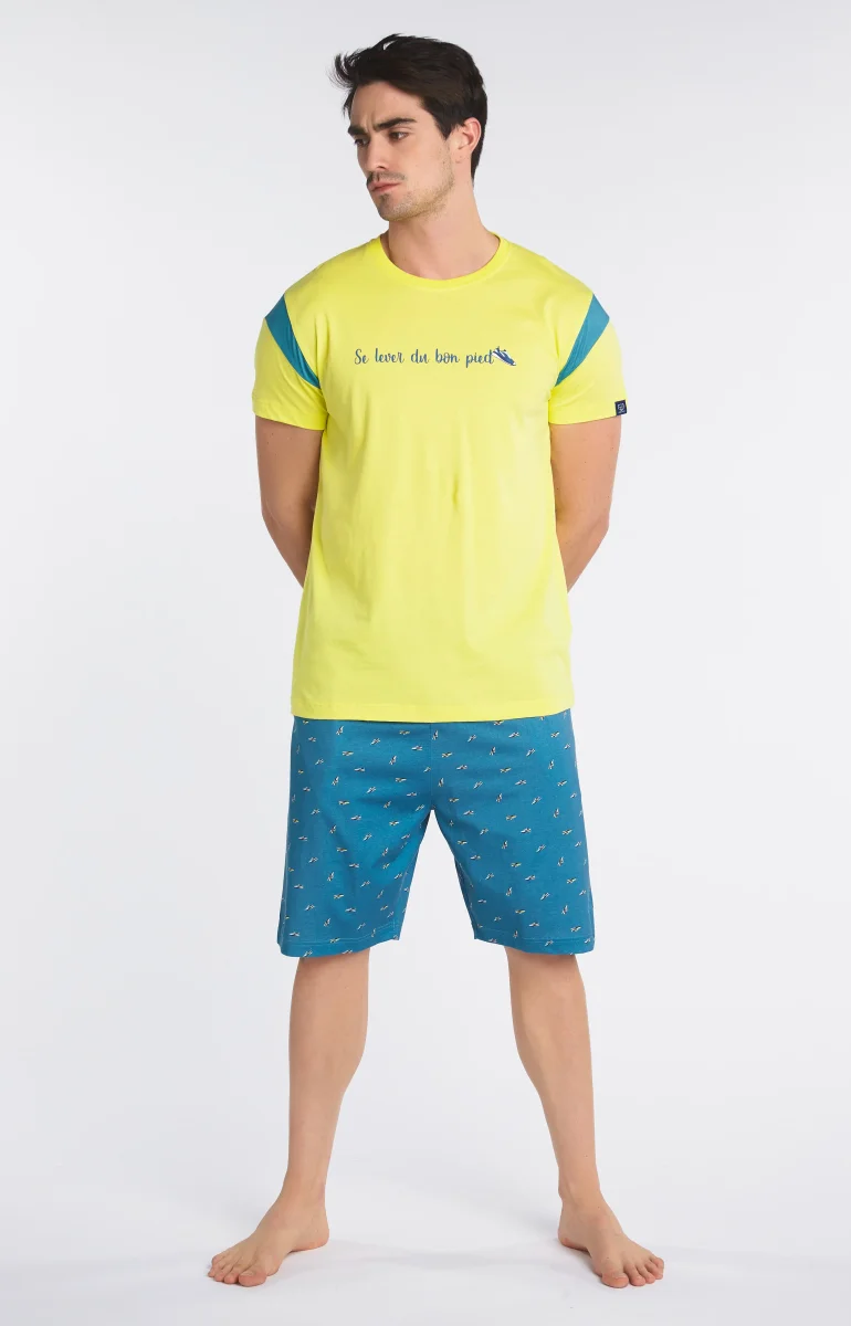Le style aux pieds et l’énergie en signature, vos étés ne sont pas de tout repos. Alors, une fois sous la couette, autant en profiter ! Ce pyjama court homme 100% coton issu de l’agriculture biologique, armé de sa sérigraphie et constellé de ses sneakers imprimées sur le short, vous permettra de vous lever du bon pied tous les matins, sans jamais vous sentir à l’étroit.