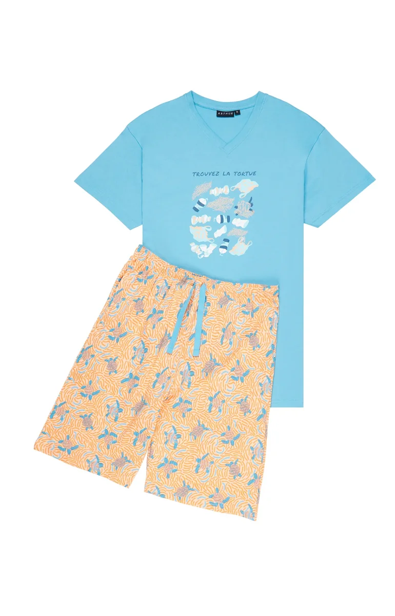 Flânez en toute décontraction avec le Pyjashort Tortue. Optez pour un pyjama 100% coton à porter en toute décontraction.