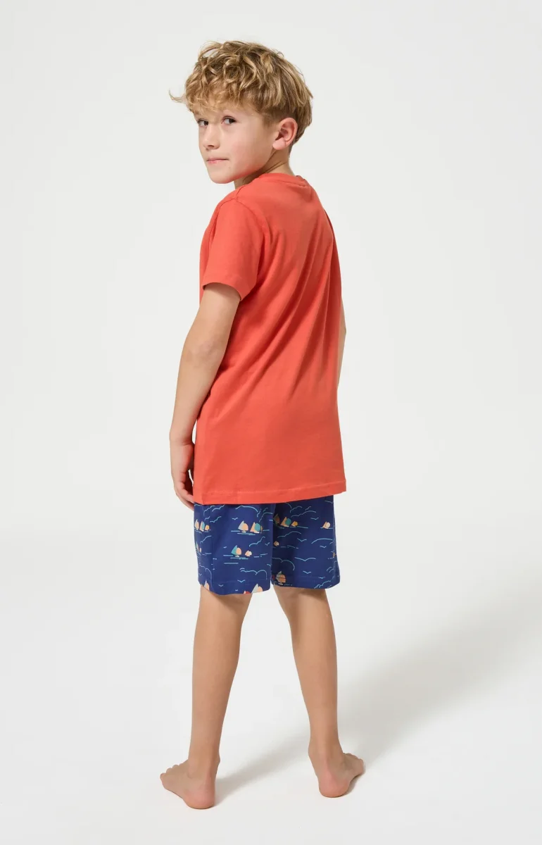 – Ensemble de Pyjama Enfant court – 100% coton issu de l’agriculture biologique – Tee-shirt uni à manches courtes et col rond – Sérigraphie poitrine – Bermuda élastiqué avec ruban de serrage – Motif exclusif créé à Paris – Confectionné dans nos ateliers partenaires en Inde