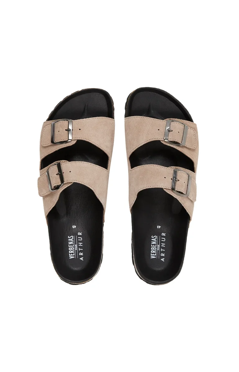 – Mules d’été ou Chaussons Homme en croûte de cuir – Doublure et première intérieure en cuir – Semelle en jute et caoutchouc – Fabriquées dans nos ateliers partenaires en Espagne