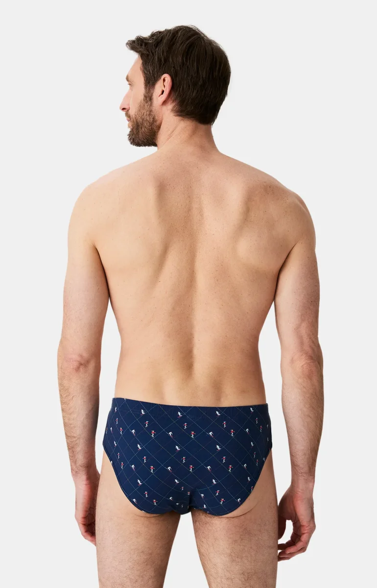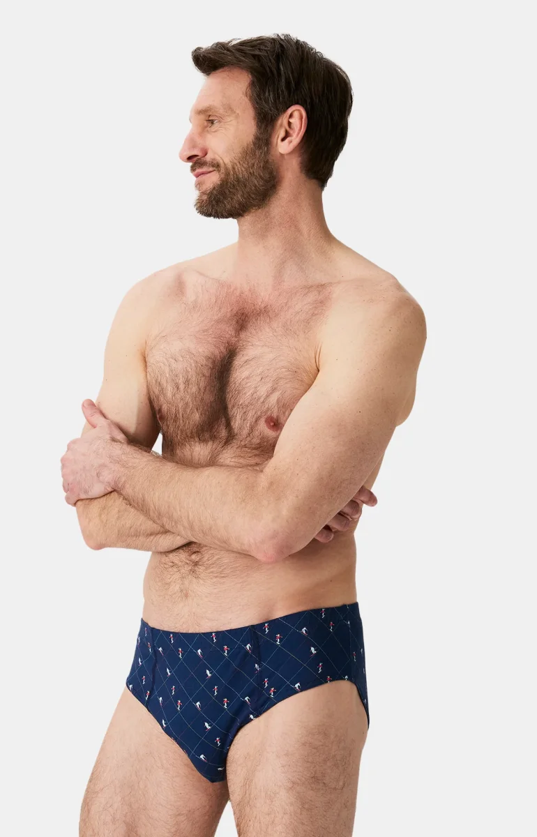 – Slip Homme – Jersey de coton issu de l’agriculture biologique – Coupe peu échancrée et finitions cuisses empêchant les sensations de cisaillement – Ceinture élastiquée – Motif exclusif créé à Paris – Confectionné dans nos ateliers partenaires en Turquie
