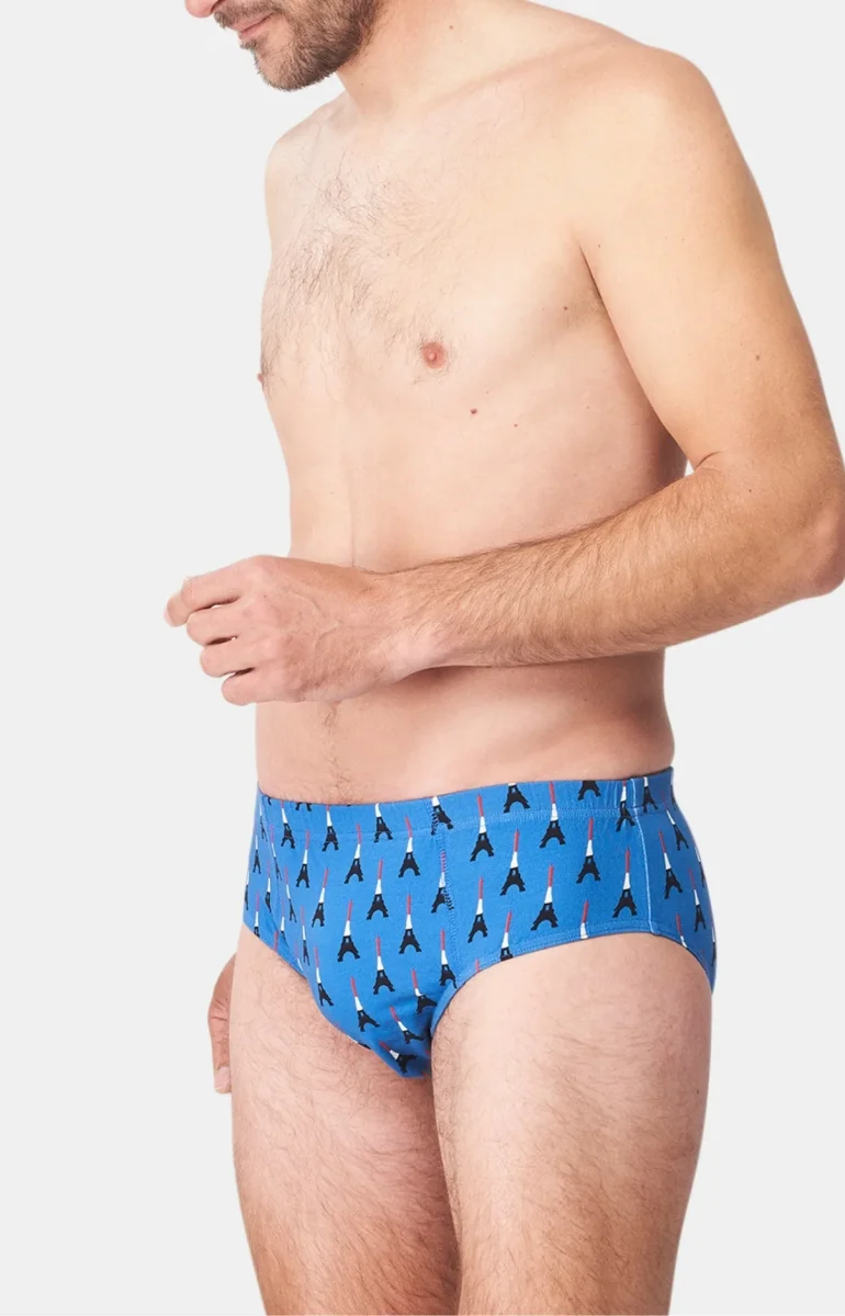 – Slip homme – Jersey de coton issu de l’agriculture biologique – Coupe peu échancrée et finitions cuisses empêchant les sensations de cisaillement – Ceinture élastiquée – Motif exclusif créé à Paris – Confectionné dans nos ateliers partenaires en Turquie