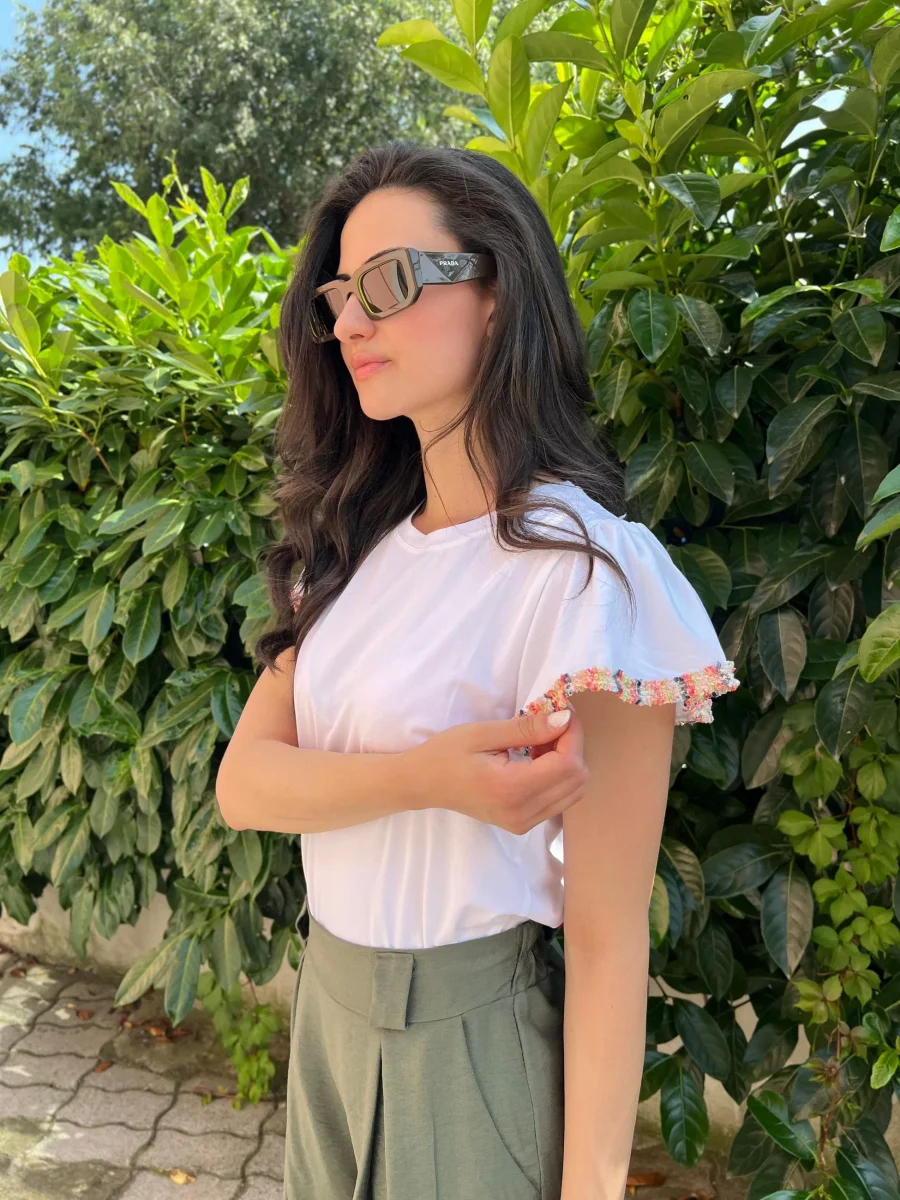 T-shirt con Manica Farfalla – Femminilità e Movimento in Ogni Dettaglio
