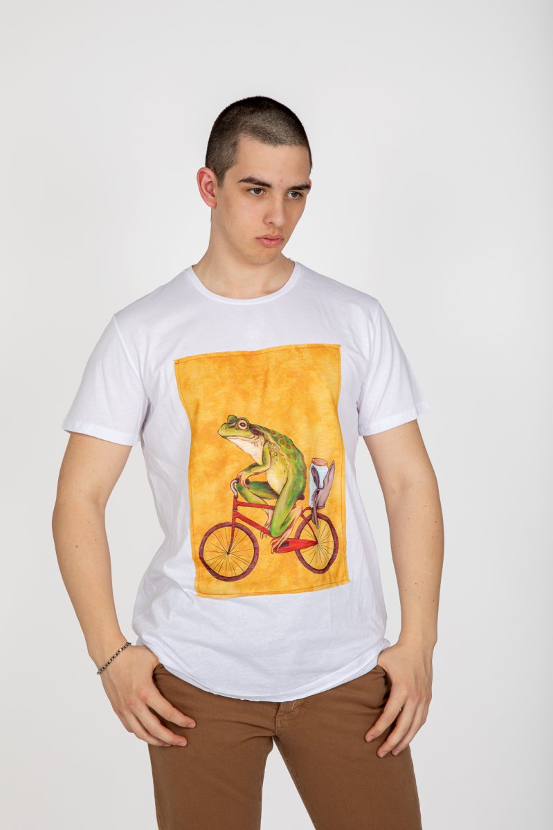 T-Shirt uomo con rana in bicicletta, made in Italy, in 100% cotone