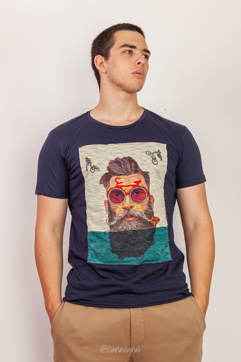 T-shirt uomo in cotone con ritratto di uomo