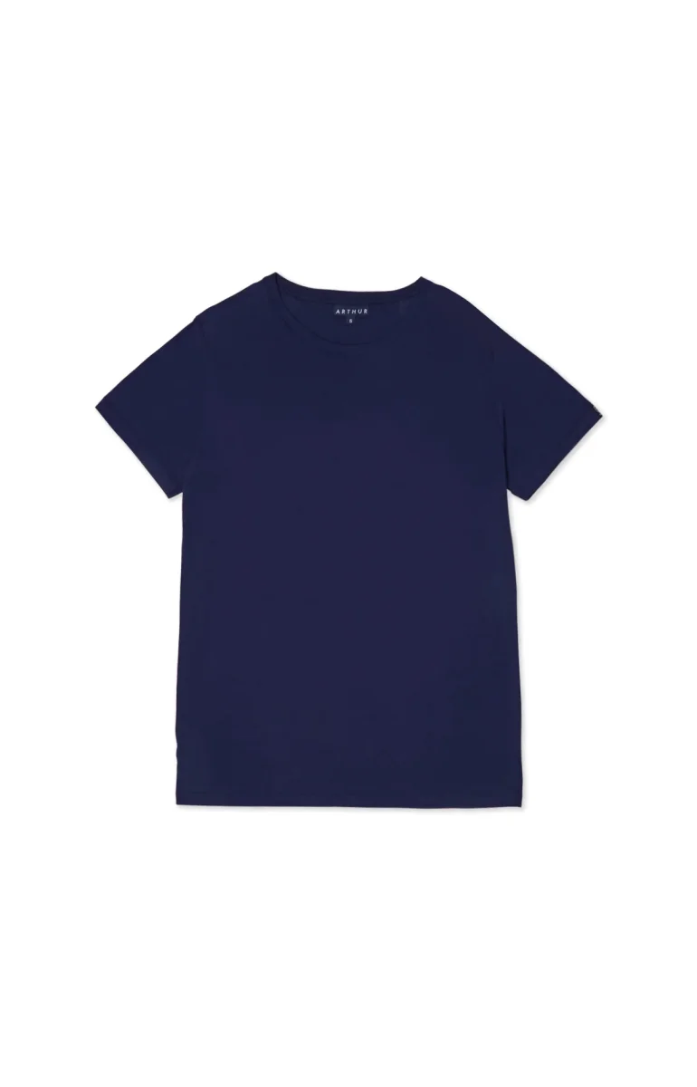 Elegant, sobre et confortable, ce tee-shirt uni bleu marine en coton pima s’adaptera parfaitement avec un bas Arthur de votre convenance.
